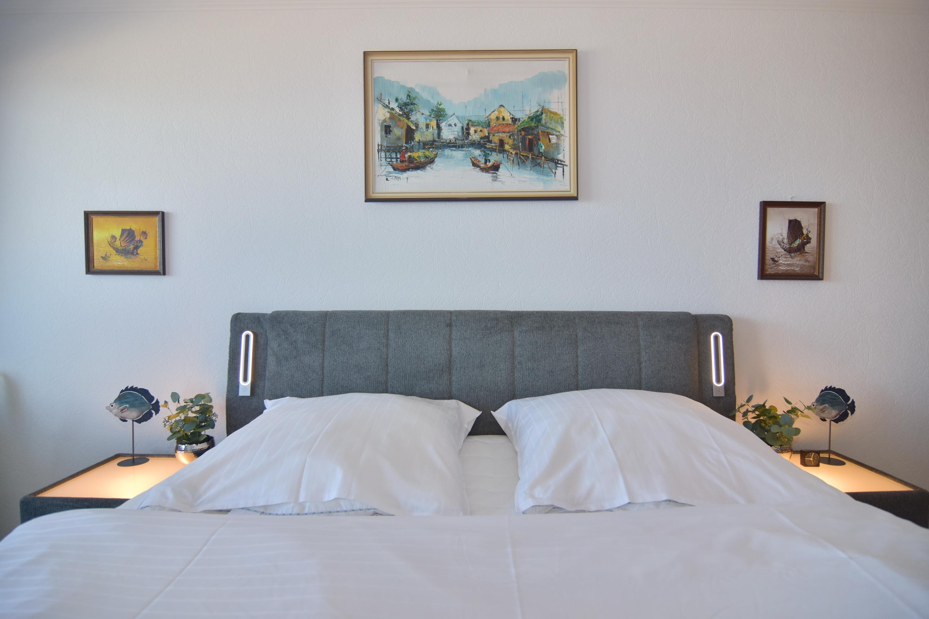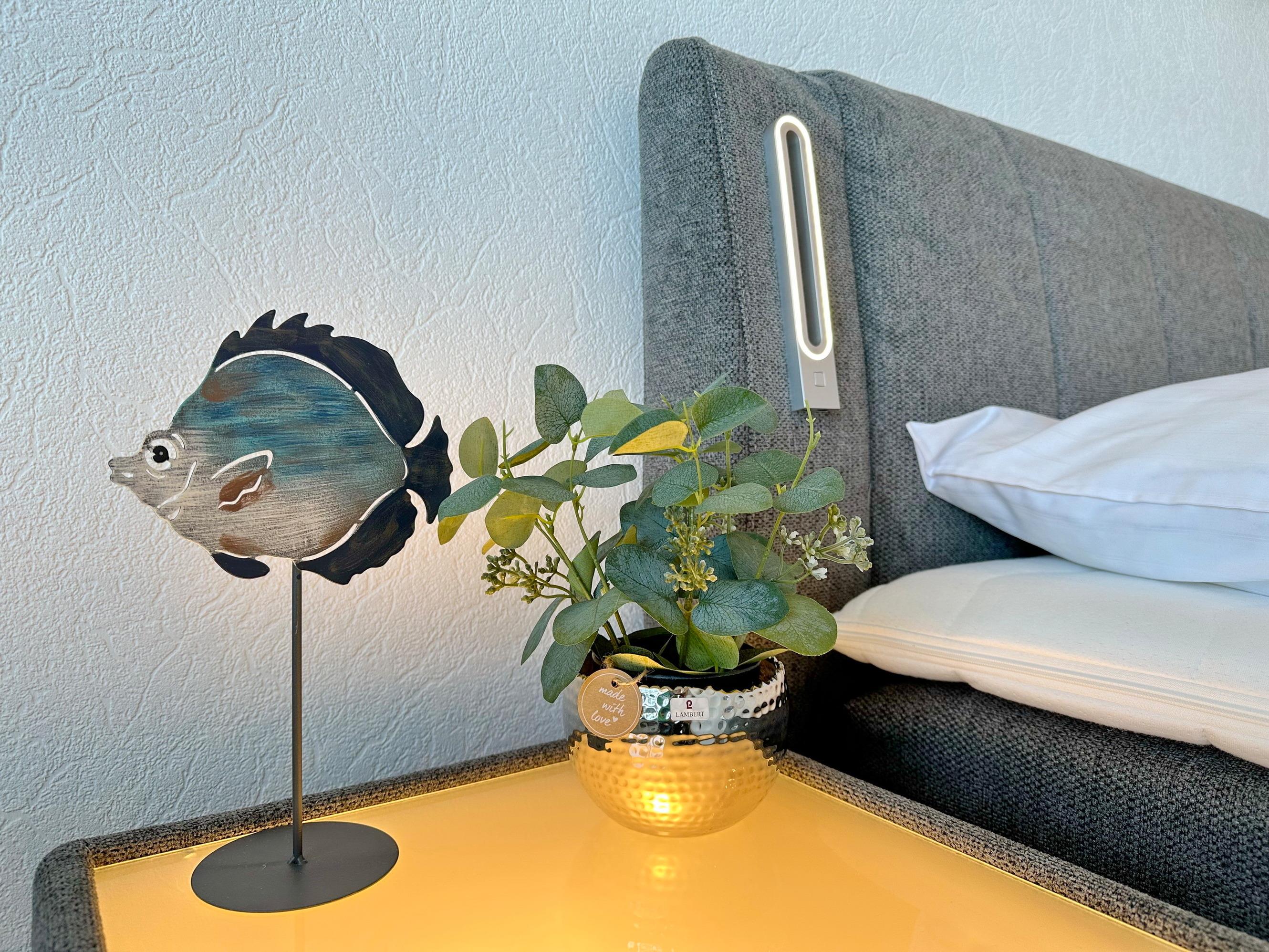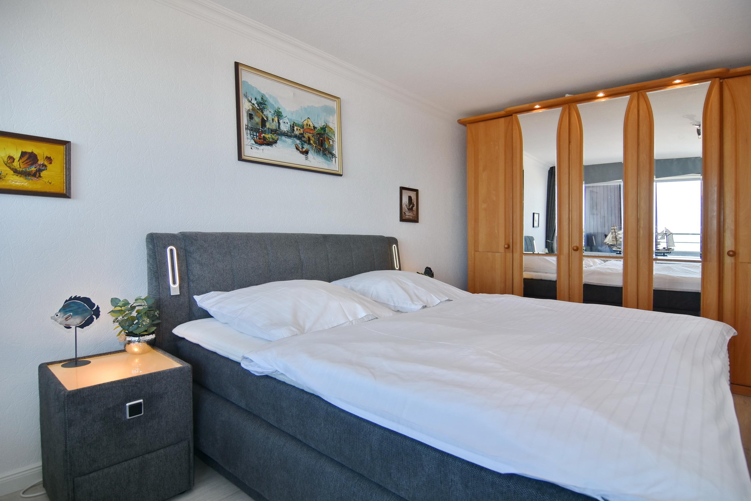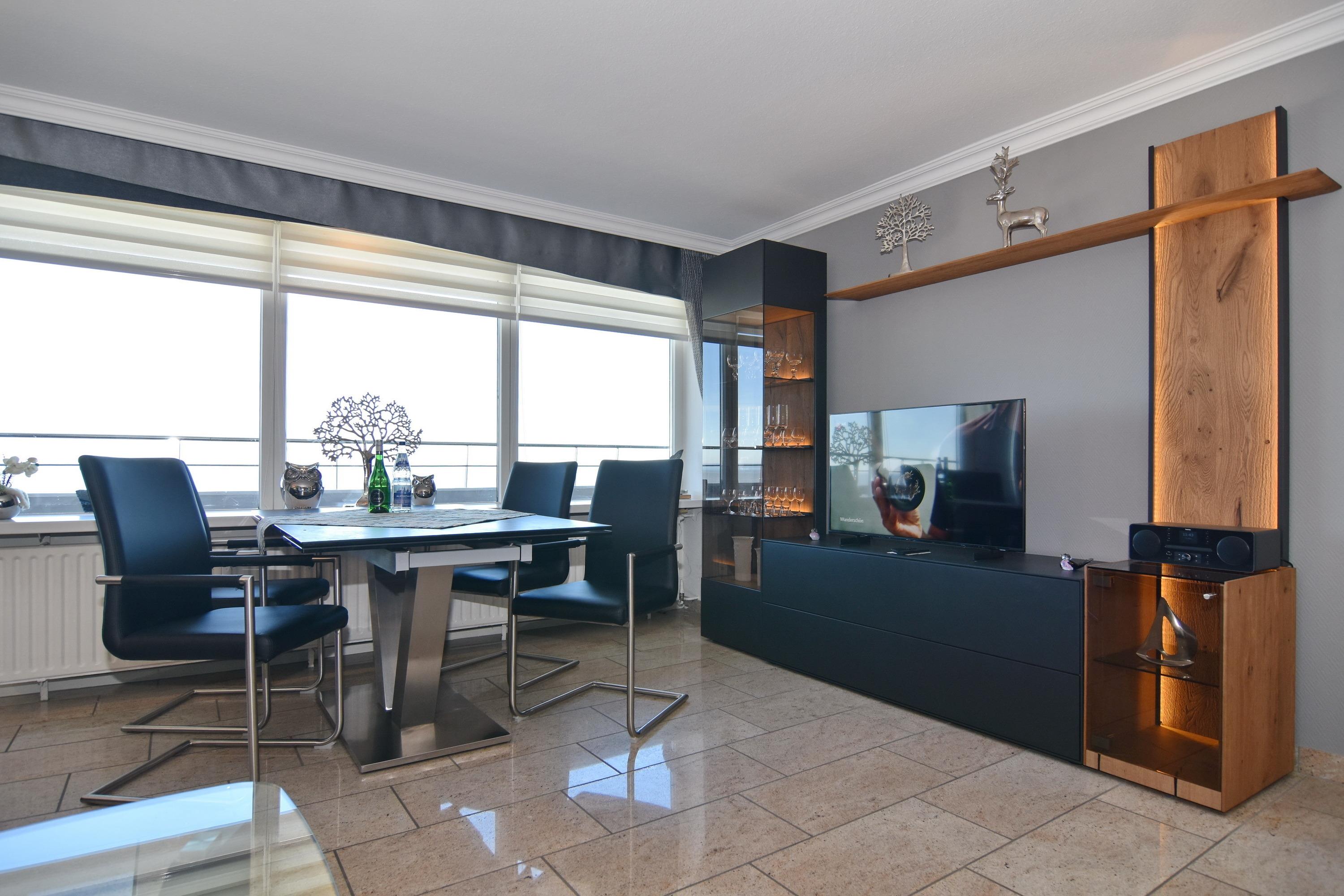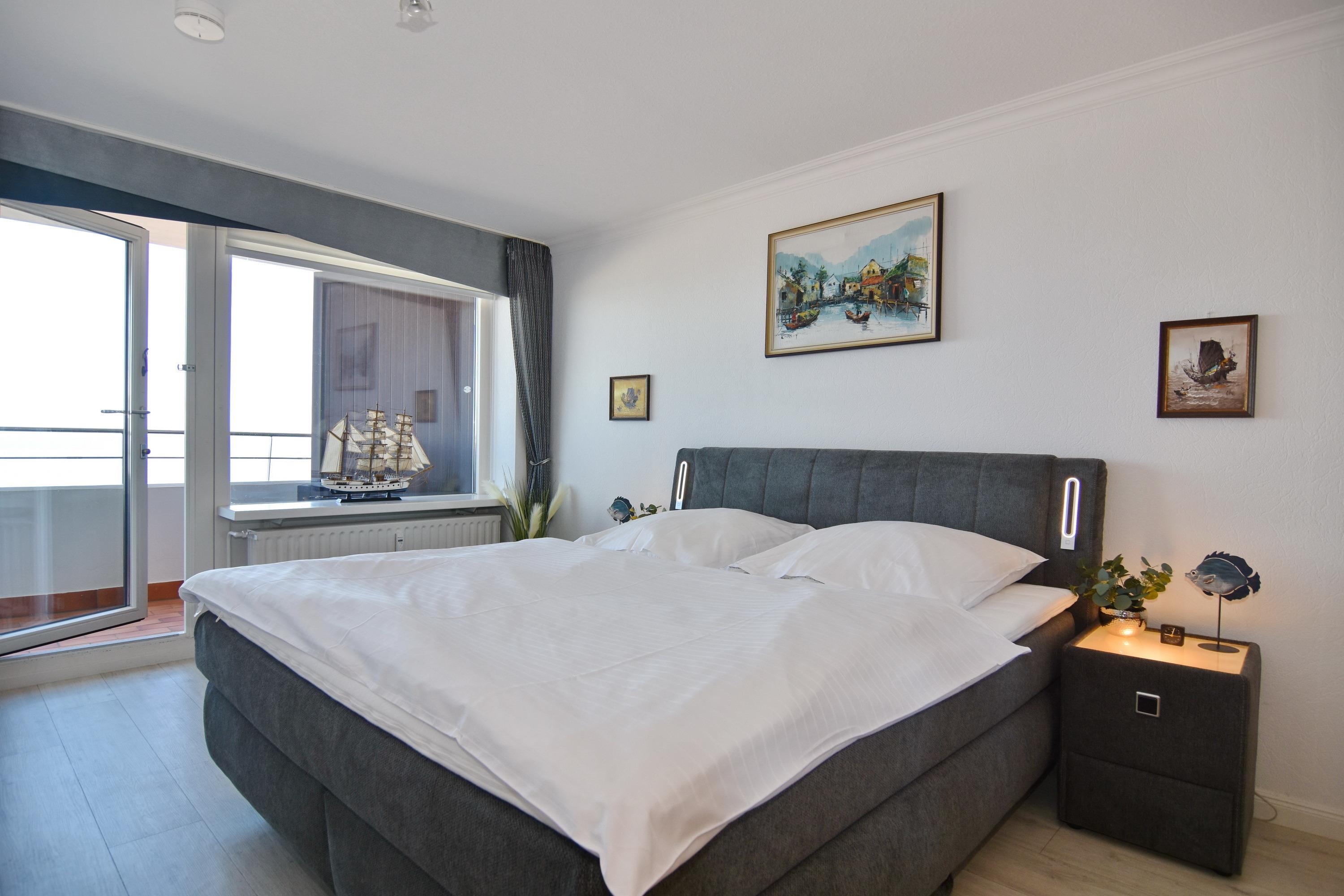 Hochwertige 2-Zimmer-Ferienwohnung, 3. OG, ca. 68 m² im Haus Metropol mit Meeresblick. Nichtraucher-Wohnung! Wohnraum mit Doppelschlafcouch und Sessel, Eßplatz am Fenster, Stereoanlage, TV, W-Lan (ohne Gewähr), Westbalkon mit Meeresblick, Schlafraum mit Boxspringbett, großem Kleiderschrank und TV, Westbalkon mit Meeresblick, separate Küche mit Backofen und Geschirrspüler, geräumiges Duschbad/WC mit Sitzmöglichkeit in der Dusche. Die Wohnung ist mit Granitfliesen ausgelegt. Tierhaltung ist nicht gestattet. PKW-Stellplatz/Garage kann kostenpflichtig gebucht werden. Bettwäsche und Handtücher sind zur Anreise aufgezogen.
