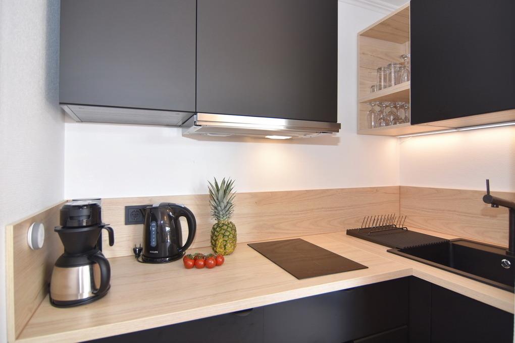 Die Wohnanlage "Olympia" bietet eine zentrale Lage in kurzer Entfernung zur Promenade, dem Badestrand und dem Meer. Auch die Fußgängerzone ist nur wenige Gehminuten entfernt. Die 1-Zimmer-Wohnung liegt im 1. Obergeschoss, wurde im Jahr 2025 von Grund auf renoviert und ist für 2 Personen ideal geeignet. Sie hat eine Größe von ca. 30 m² und besteht aus einem Wohn- und Schlafzimmer mit Doppelbett, Einbauschränken, Couch und Essplatz sowie einer geschützten Südbalkon mit Gartenmöbeln. Das TV-Gerät ist schwenkbar, sodass sowohl vom Bett als von Couch ferngesehen werden kann. Die integrierte Küche ist mit einem Induktionskochfeld und Kühlschrank ausgestattet. Das moderne Duschbad ist vom Dielenbereich erreichbar. In der Diele befinden sich Einbauschränke und eine Garderobe für Jacken und andere Dinge. WLAN steht zur Verfügung, jedoch ohne Gewähr. Das Mitbringen von Haustieren und das Rauchen sind nicht gestattet. Bei Anreise sind Bettwäsche und Handtücher bereits aufgezogen. Die Wohnanlage verfügt über einen Schwimmbad- und Saunabereich sowie einen zusätzlichen Wellnessbereich mit finnischer Sauna, Dampfsauna und Ruhebereich. Fahrzeuge können gegen Gebühr und vorheriger Anmeldung in der Tiefgarage abgestellt werden. Waschmaschinen und ein Trockner stehen kostenfrei zur Verfügung. Für Fahrräder gibt es einen Abstellbereich in der Garage.