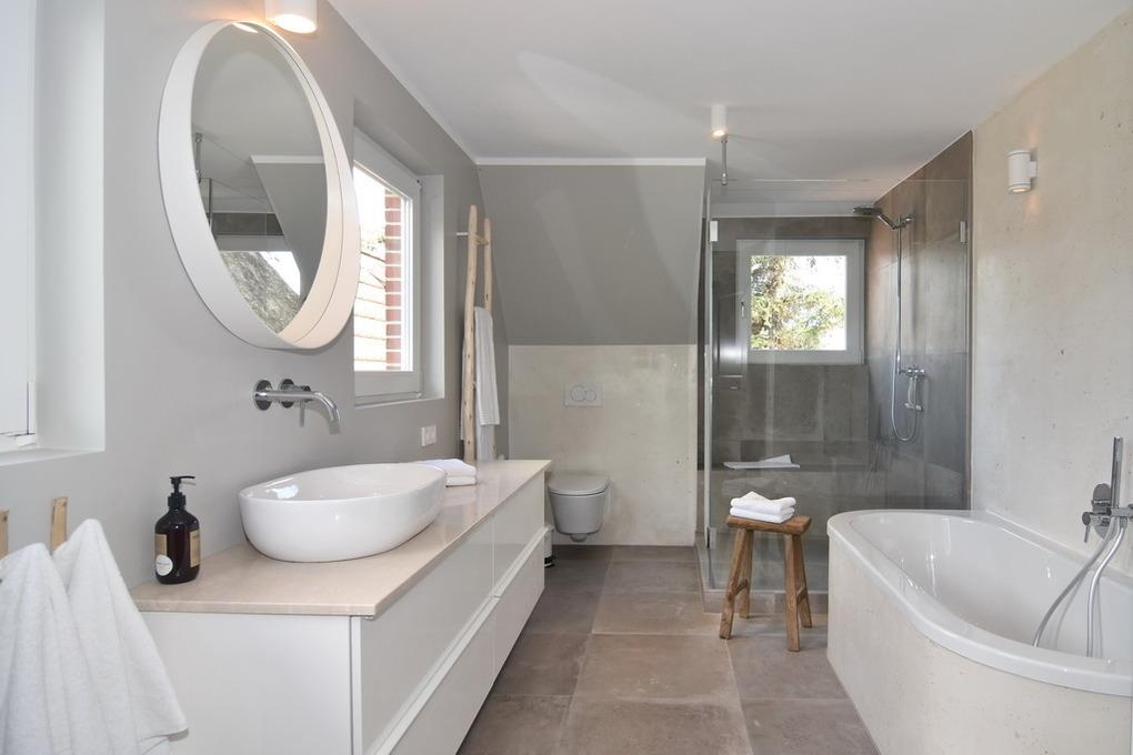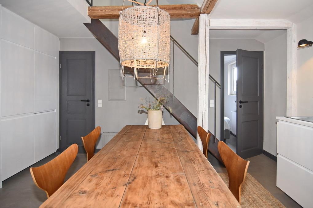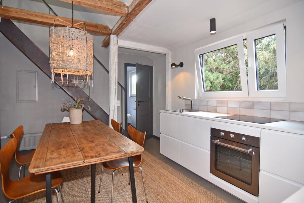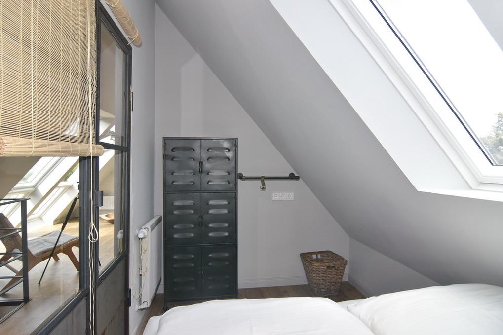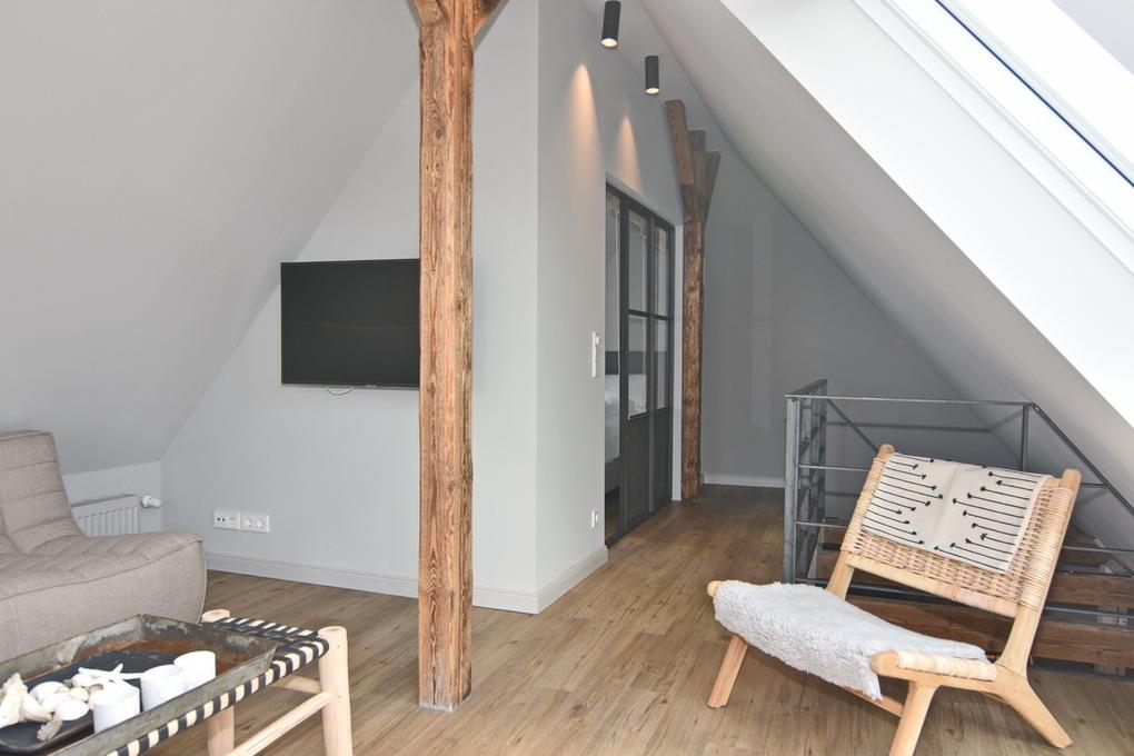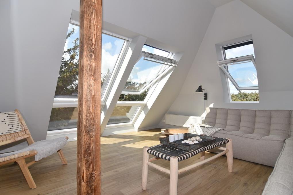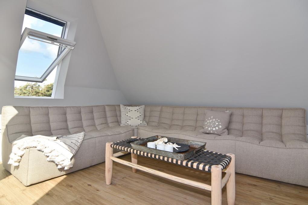 Direkt hinter den Dünen gelegen und dem Strand ganz nah.' [nbsp]Hier wohnen Sie in einer frisch renovierten 5-Zimmer-Maisonette-Wohnung mit ca. 74qm. Frei gelegte Deckenbalken, Naturtöne und liebevoll ausgewählte Möbel und Dekoration schaffen für Sie einen Ort der Ruhe und Entspannung. Im Obergeschoß befindet sich eine helle Wohnküche mit einem Essplatz für bis zu 6 Personen. Die Küche verfügt über Geschirrspüler, Backofen, großen Kühlschrank und separatem Gefrierschrank sowie eine Waschmaschine. Auf selber Ebene befinden sich ein Schlafzimmer mit Doppelbett (180x200), TV[nbsp][nbsp]und großem, eigenen Bad mit Dusche, Wanne und Kleiderschrank; ein weiteres Schlafzimmer mit Doppelbett (160x200), Kleiderschrank und TV und ein separates Duschbad /WC. Aus der Wohnküche geht eine Metalltreppe ins Dachgeschoß (Achtung: offenes Geländer - nicht für Kleinkinder geeignet). Hier befindet sich ein weiterer Schlafraum (Jugendzimmer mit Doppelbett (160x200) und kleinem Spint - wunderschön hell, da hier eine Eisentrennwand mit Glas verbaut wurde - und der Wohnbereich mit gemütlicher Sitzecke, TV und großen, bodentiefen Veluxfenstern. Internet (ohne Gewähr) ist vorhanden. Bettwäsche und Handtücher sind zur Anreise aufgezogen. Parken in der Straße möglich. Kleiner, gemeinschaftlicher Außenbereich vor dem Haus. Fahrradständer am Haus. Tierhaltung und Rauchen sind im Objekt verboten.