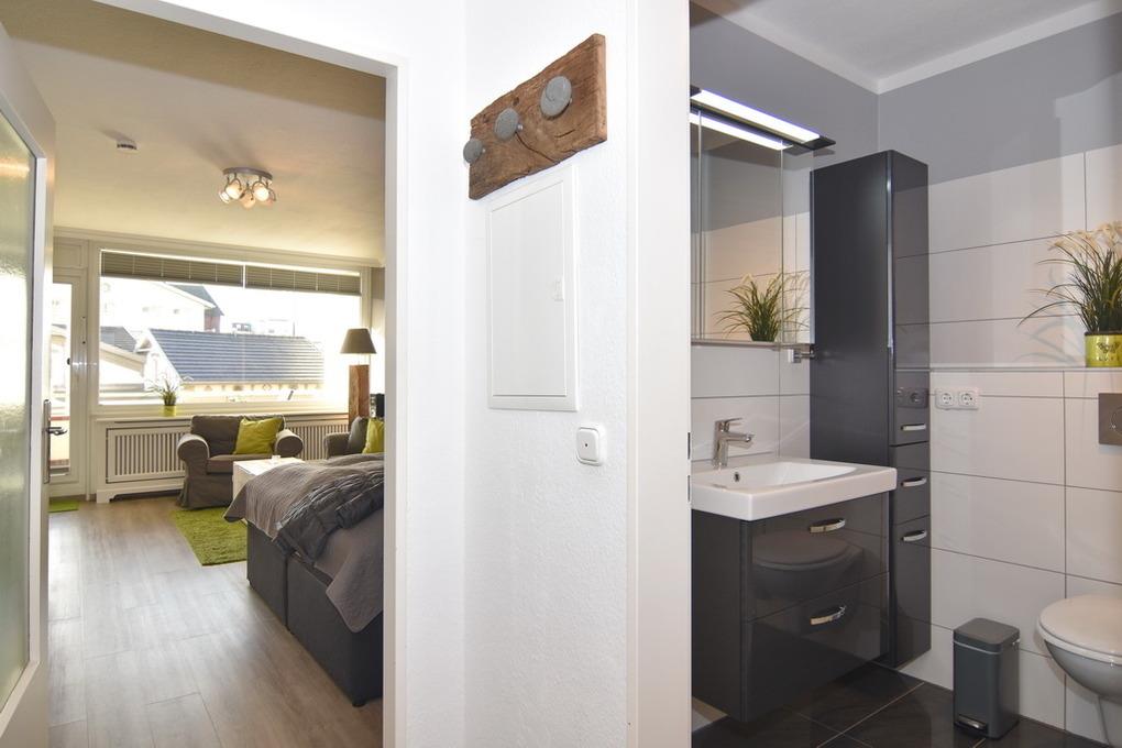 Diese hübsche 1-Zimmer-Ferienwohnung liegt mitten im Herzen von Westerland nur wenige Minuten vom Strand entfernt. Geniessen Sie die zentrale Lage mit all Ihren Vorzügen. Die Wohnung hat einen geräumigen Wohn-/Schlafraum mit Südbalkon, eine Küchenzeile im Flurbereich und ein modernes Duschbad / WC. Im Wohn-/Schlafraum erwartet Sie ein Boxspring-Doppelbett (180x200), Sitz- und Essgruppe, Flat-TV mit DVD-Player und ein Kleiderschrank, W-LAN ( ohne Gewähr ). Der möblierte Balkon lädt zum Verweilen in der Sonne ein. Bettwäsche und Handtücher sind zur Anreise aufgezogen. Tierhaltung und Rauchen sind in der Wohnung nicht gestattet. Im Haus befindet sich eine Waschküche mit Münz-Waschmaschine und -trockner. Der dazugehörige Garagen-Stellplatz (78/27 = Stellplatz 27) kann bei Buchungsabschluss der Wohnung zu € 10,--/Nacht gebucht werden. Danach verfällt der Anspruch.