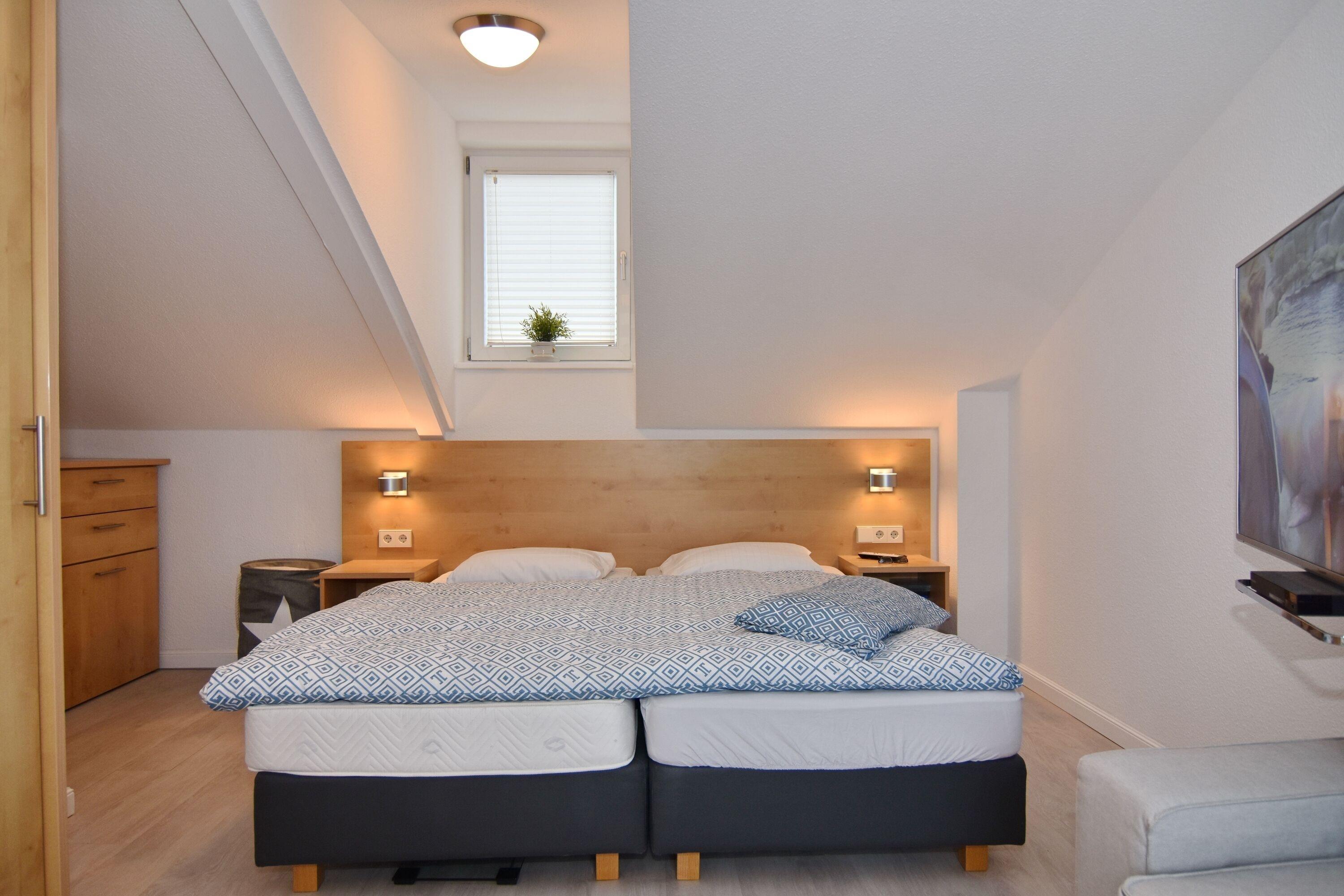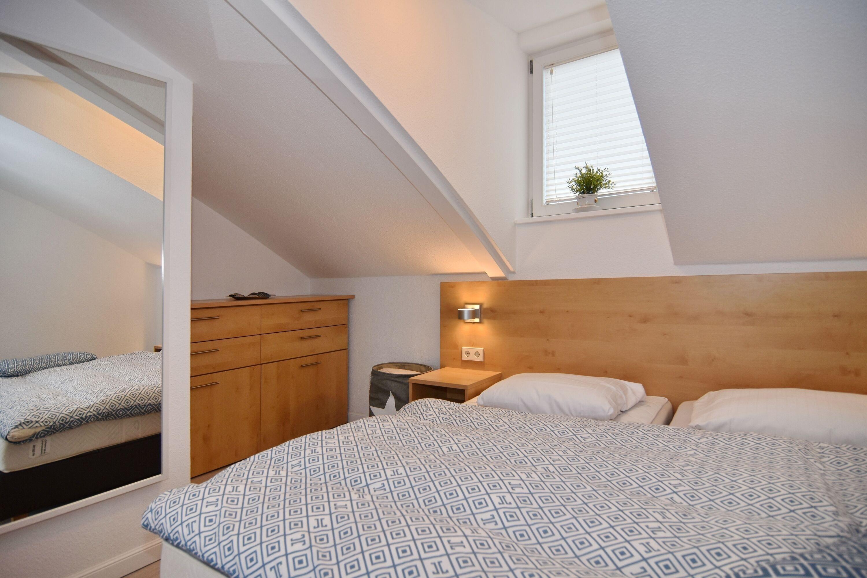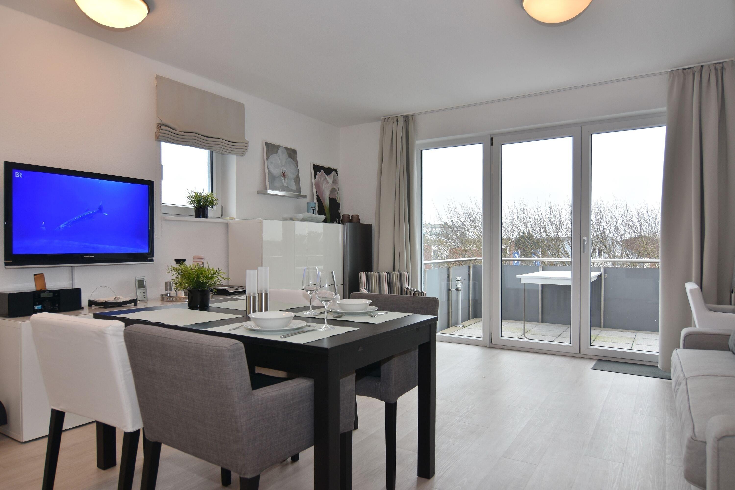 2-Zimmer-Wohnung in der "Residenz Mauritius" im blauen Haus, ca. 53 m², Nichtraucher.[nbsp][nbsp]2. OG/DG: OG: Wohn-/Essraum mit Südbalkon, Essplatz, 2-Sitzer-Couch, TV, Einbauküche mit Geschirrspüler, Flur mit Einbauschrank, Duschbad / WC. DG: Schlafzimmer mit Doppelbett (180x200), Einbauschrank, TV, Couch und Südterrasse. Internetanschluß (ohne Gewähr). Waschküche und Fahrradkeller im Nebenhaus "Mauriitus". Pkw-Stellplatz kann kostenpflichtig hinzugebucht werden. Bettwäsche und Handtücher sind zur Anreise aufgezogen! Tierhaltung ist nicht gestattet.