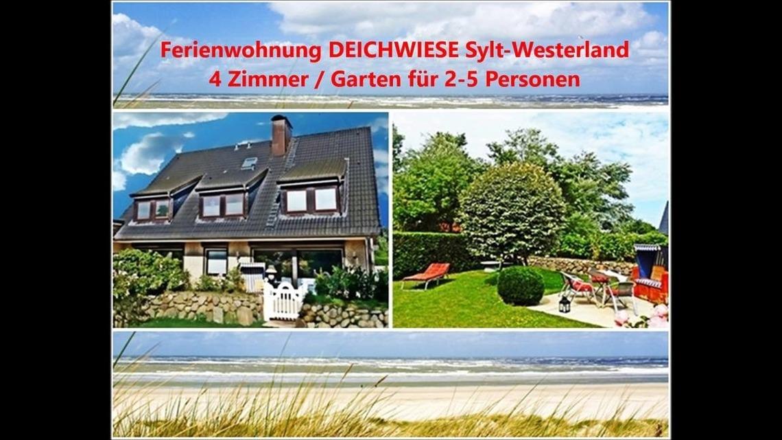 Moderne 4-Zimmer-Ferienwohnung SYLTER DEICHWIESE ( 80 qm) mit Garten und Terrasse. Ruhig und zentral in Westerland auf Sylt. Ideal für 2 - 5 Personen / 3 Schlafzimmer. Zu Fuß ca. 8 Minuten zu Strand, Fußgängerzone und Bahnhof.