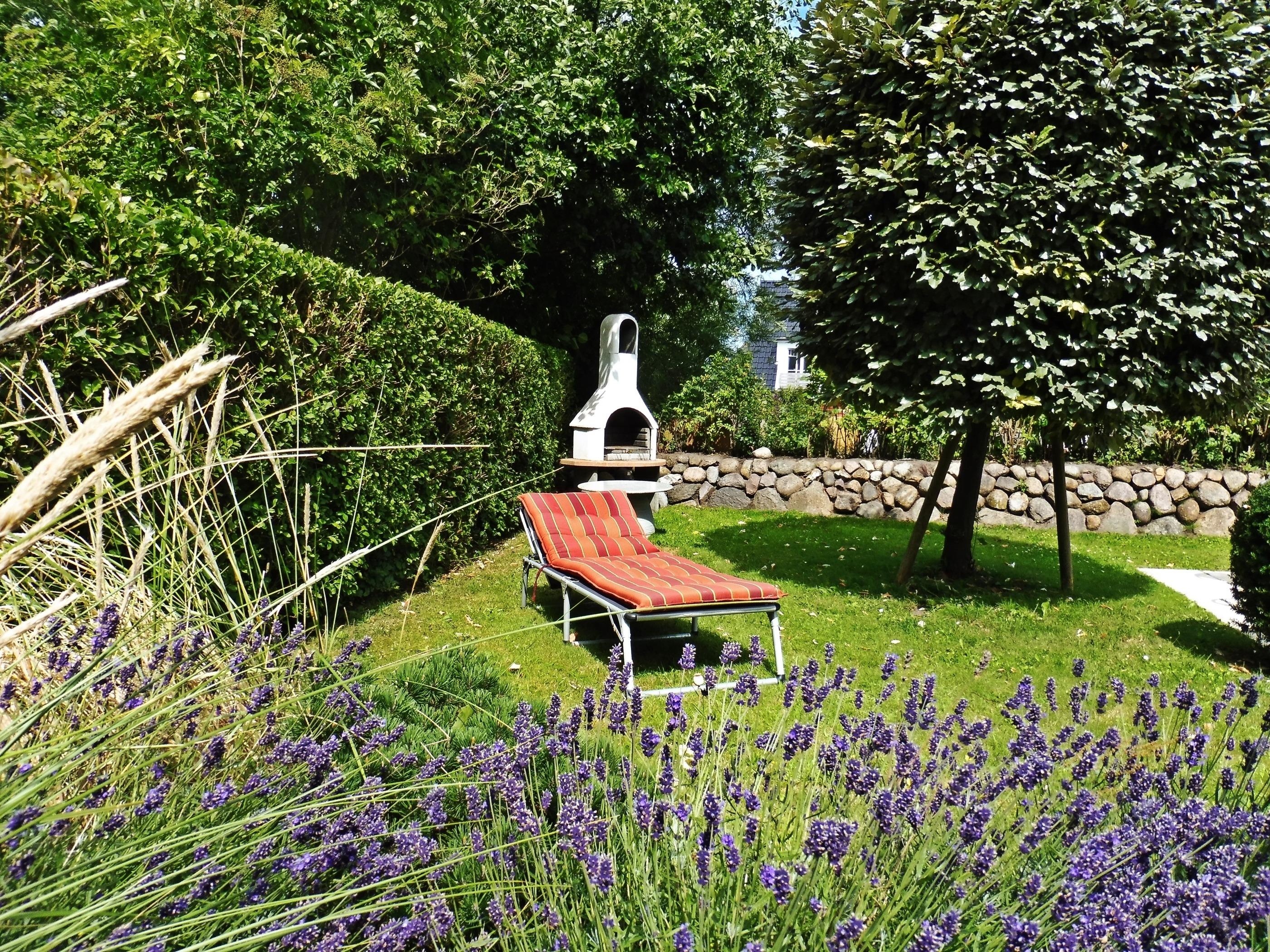Im Außenbereich erwartet Sie ein großer Garten mit eigener Terrasse mit Strandkorb, Sitzecke und Grill. Ihr PKW oder Fahrrad parkt kostenfrei auf dem Grundstück.