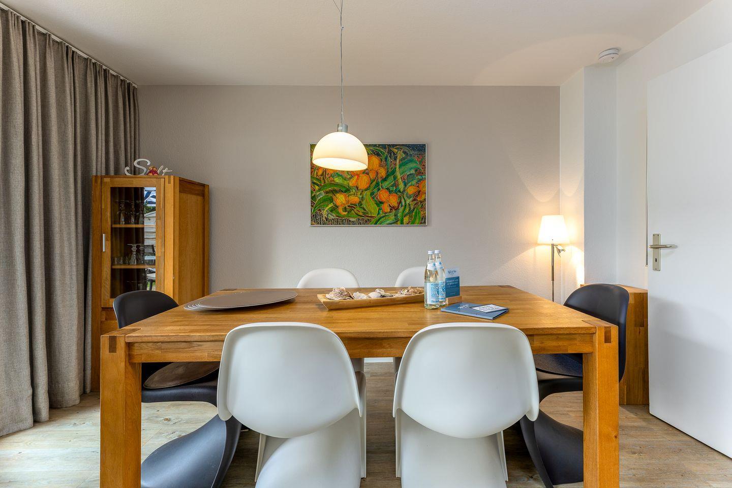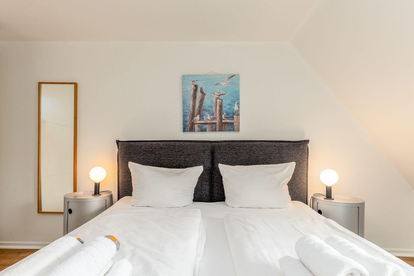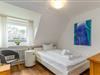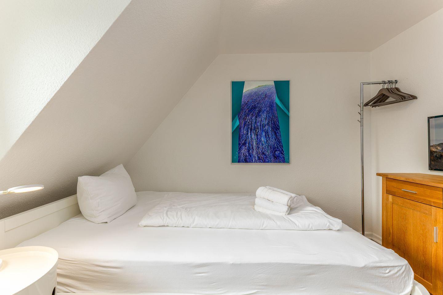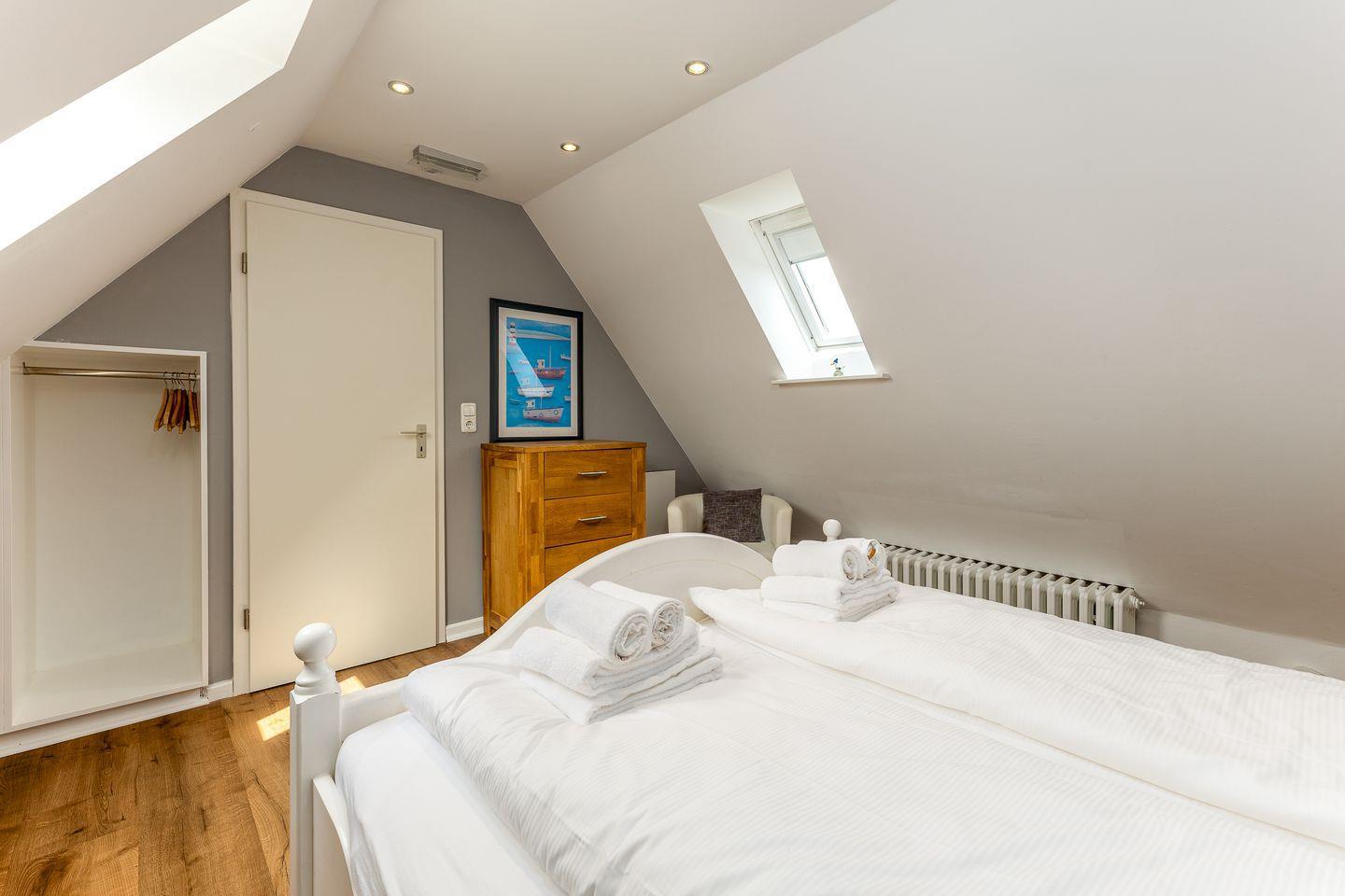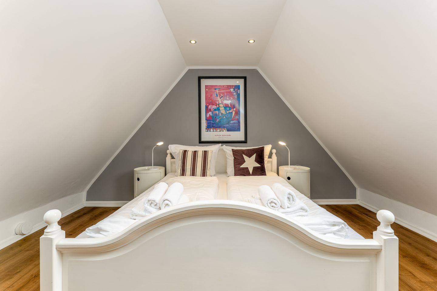 Und wer weiss, vielleicht entstand in diesen Räumen sogar der Ohrwurm "Junge, komm bald wieder", was man sich nach einem Aufenthalt hier durchaus wünschen könnte. Mit seinen drei Etagen und den großzügig geschnittenen Räumen ist Haus Treibholz perfekt für Familien geeignet. Im Erdgeschoss befindet sich das einladende Wohnzimmer mit seinem großen Esstisch und dem Zugang zur Gartenterrasse (Westausrichtung). Eine vollausgestattete Küche sowie ein Gäste-WC machen die untere Etage komplett. Das Obergeschoss umfasst zwei Schlafzimmer mit einem bequemen Doppelbett sowie einem Einzelbett und ein modernes, großes Duschbad mit Sauna. Ein weiteres Doppelbett befindet sich eine Treppe höher in dem gemütlich ausgebauten Spitzboden.