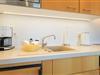 -vertäfelung in warmen Brauntönen verleihen diesem Urlaubsdomizil eine gute Prise Gemütlichkeit. Hier wurden der Wohn-/und Schlafraum clever miteinander kombiniert und so geht der Schlafbereich unauffällig in die Fernsehecke über. Die Küche befindet sich in einem separaten Raum und bietet genügend Platz für einen Esstisch - wobei bei schönem Wetter natürlich auch nichts gegen ein Frühstück auf dem sonnigen Süd-Balkon spricht.