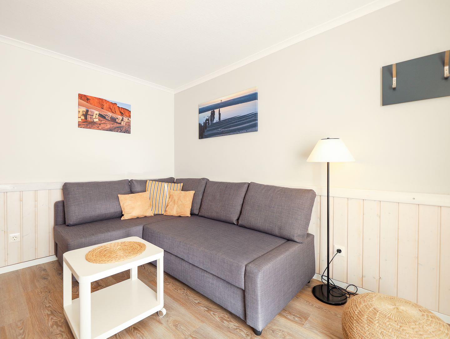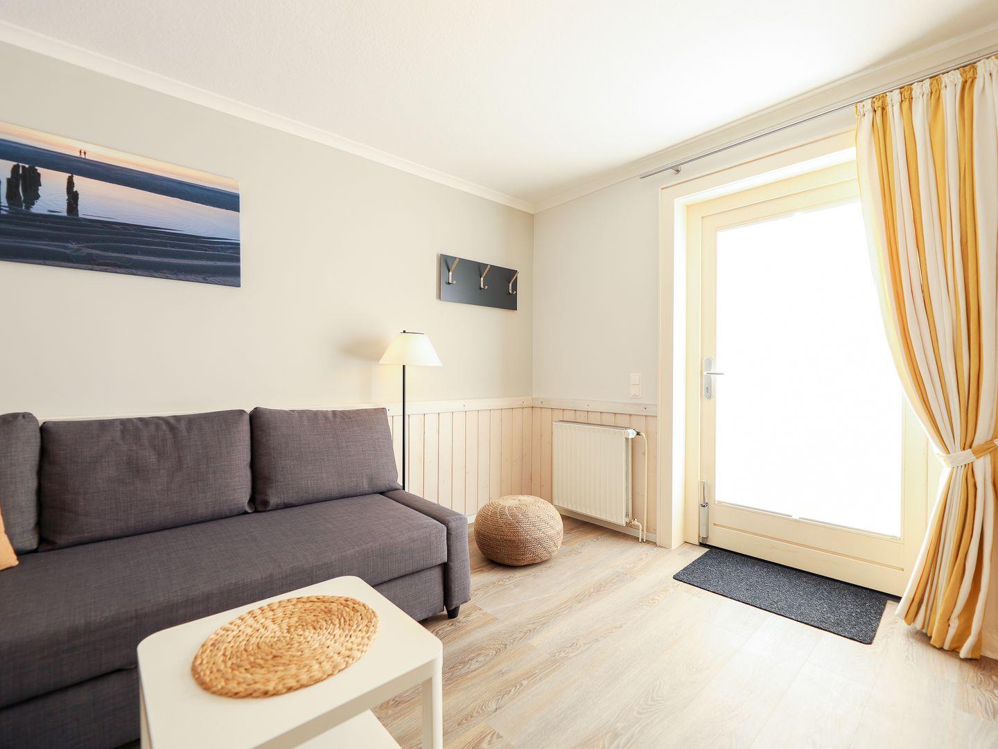 Mit individuell getischlerte Einbauten, hochwertige Holzvertäfelungen und hellen Pastelltönen bietet das Appartement viel Platz für alle, bei denen Komfort großgeschrieben wird. Nicht zu viel, nicht zu wenig, sondern genau richtig. Ein Schlafzimmer mit bequemen Doppelbett sorgt für schöne (Sylt)träume. Das Wohnzimmer verfügt über einen Esstisch und eine große Couch zum chillen. Abgerundet wird dieser Wohlfühlort durch eine kleine aber gut ausgestattete Küchenzeile sowie ein helles Duschbad. Bei schönem Wetter lädt die Terrasse vor der Tür zum Draußen sitzen ein.