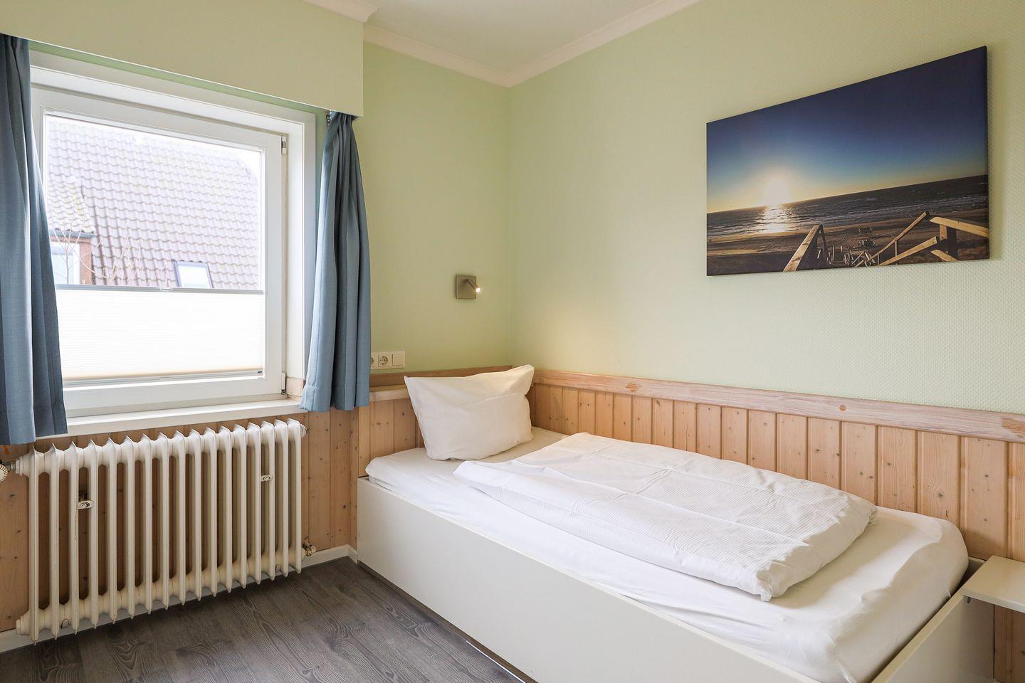 Urlauben in Bestlage: Appartement Imke liegt auf einem ruhigen Innengrundstück fernab der Straße. Die Westerländer Innenstadt ist nur fünf Gehminuten entfernt, genauso wie der Strandabschnitt "Himmelsleiter". Direkt um die Ecke gibt es eine Bushaltestelle und der Bahnhof ist fußläufig in 15 Minuten erreichbar.