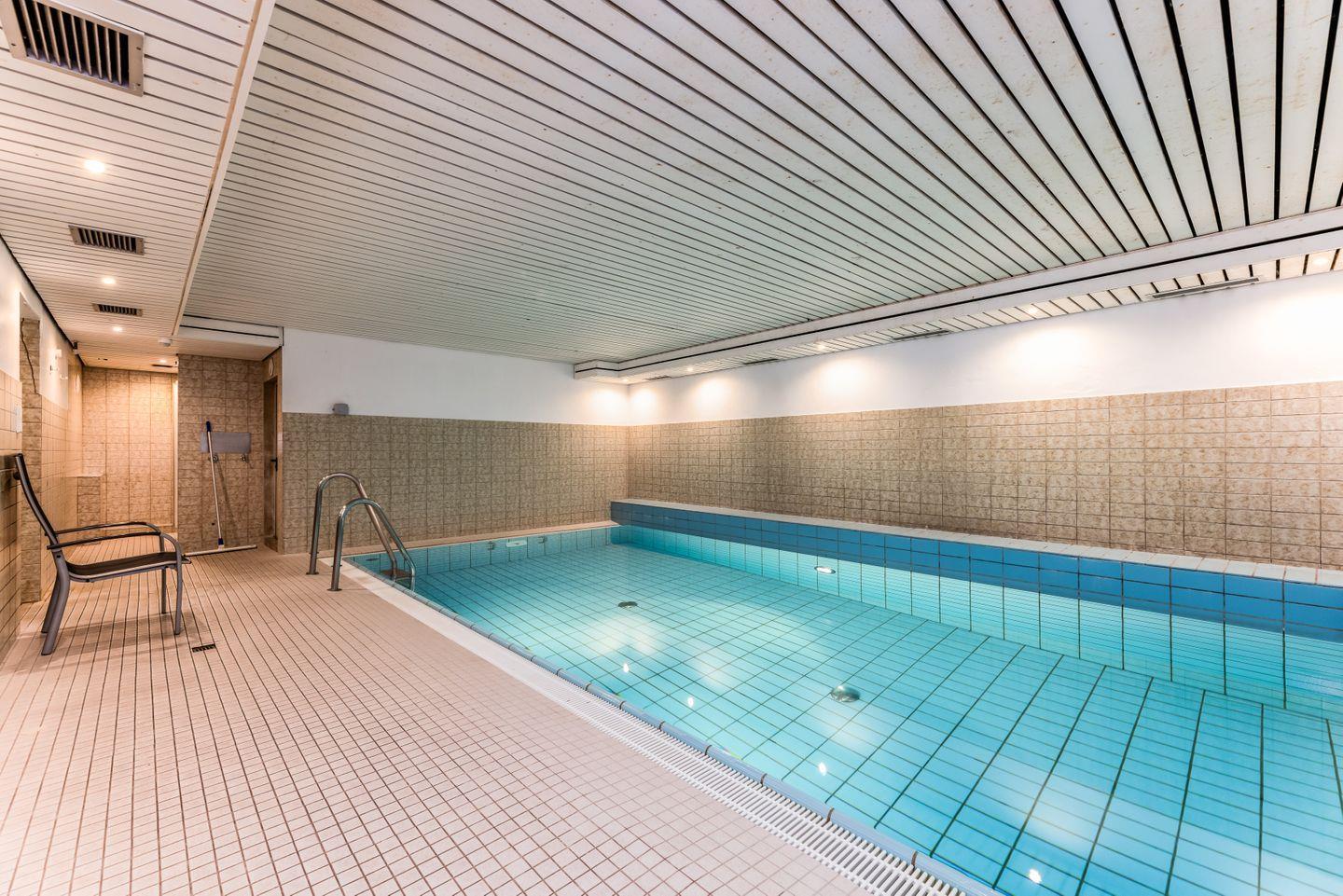 Anschließend lädt dann das große Schwimmbad nebst Sauna im Untergeschoss des Hauses zu einem entspannten Wellnes-Programm ein.