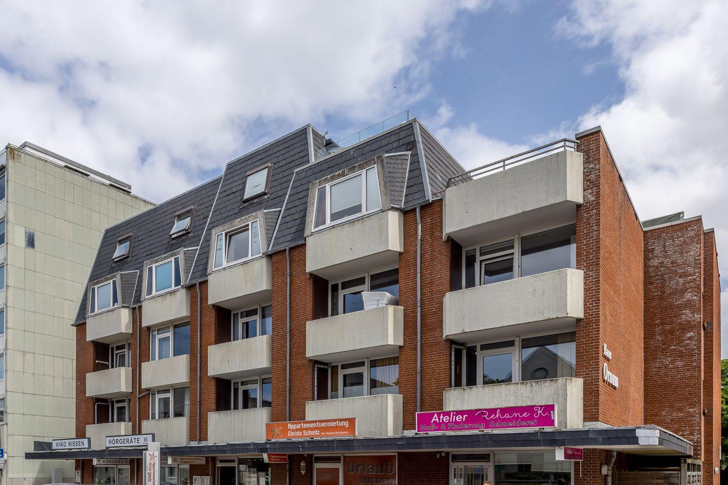 Das Appartementhaus "Ornum" befindet sich in zentraler Lage, unweit des Rathauses und der Friedrichstraße mit ihren zahlreichen Einkaufsmöglichkeiten und Restaurants. Der Westerländer Bahnhof ist nur einen Katzensprung entfernt.