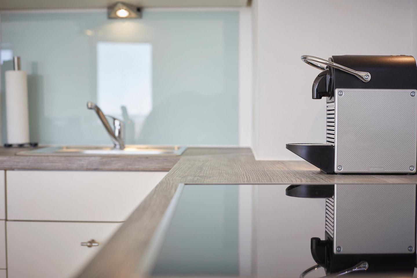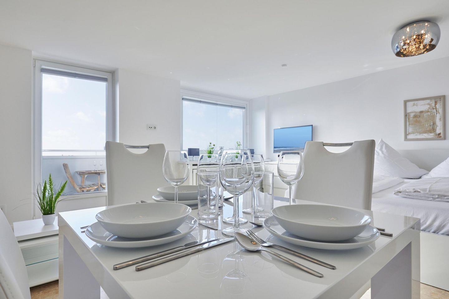 Modernes App. für bis zu 2 Personen mit schönem Westbalkon samt einzigartigem Meerblick in stadt- und strandnaher Lage. Inklusive WLAN, zugehörigem Tiefgaragenstellplatz sowie Fahrstuhl.