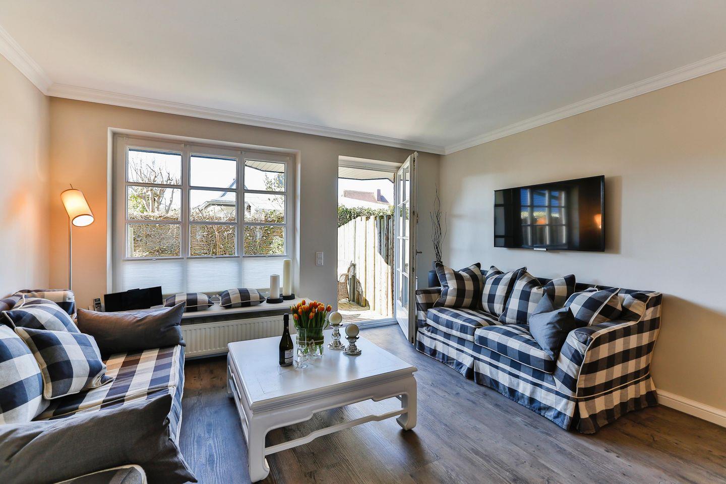 Hochwertige ca. 75 m² große Ferienwohnung für bis zu 4 Personen mit schönem Garten in ruhiger, zentraler Lage. Inklusive WLAN, zugehörigem PKW- Stellplatz sowie Strandkorb (in der Saison).