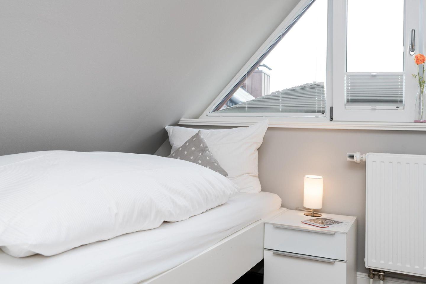 Das Highlight bildet - im wahrsten Sinne des Wortes - der ausgebaute Spitzboden mit seinen zwei Einzelbetten und dem großen Fenster, dass freie Sicht in die Natur bietet.