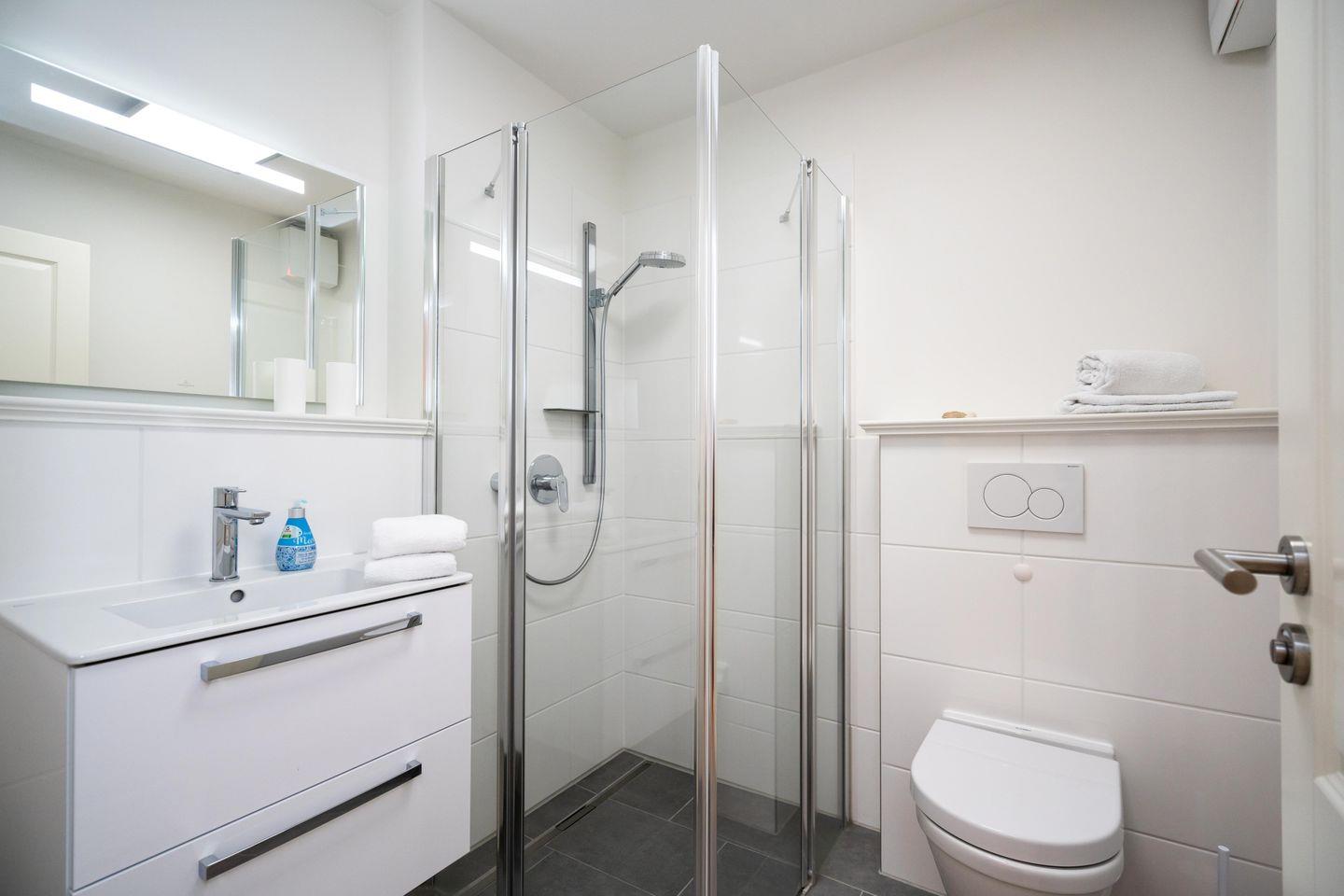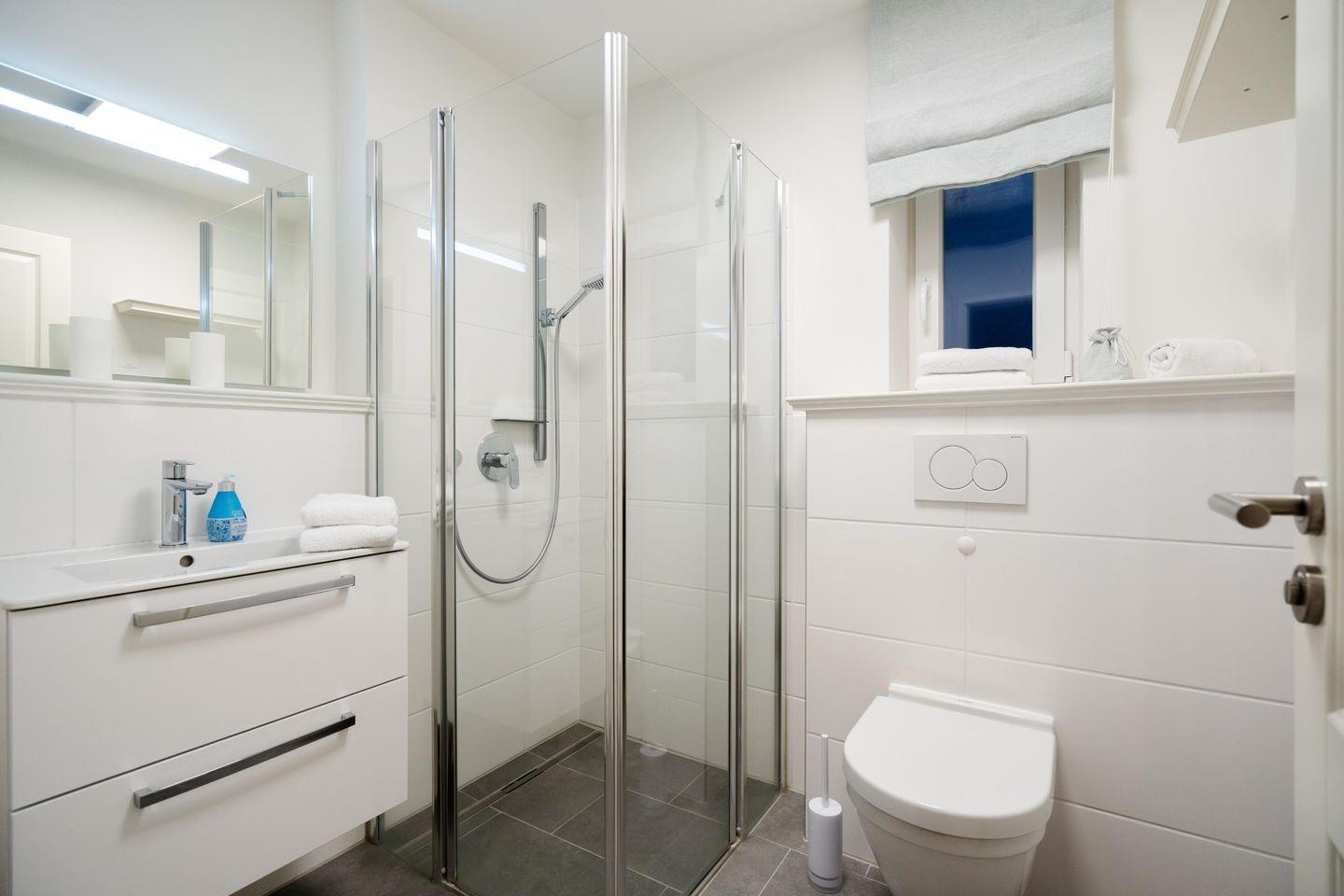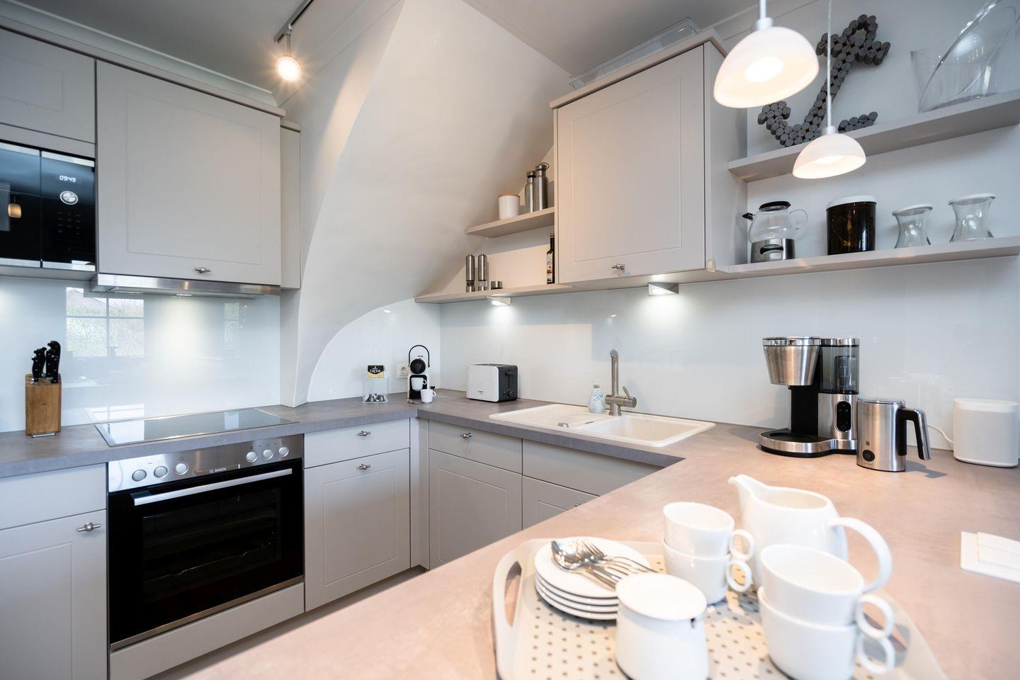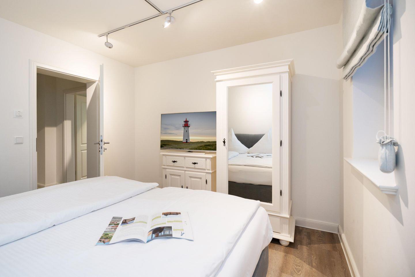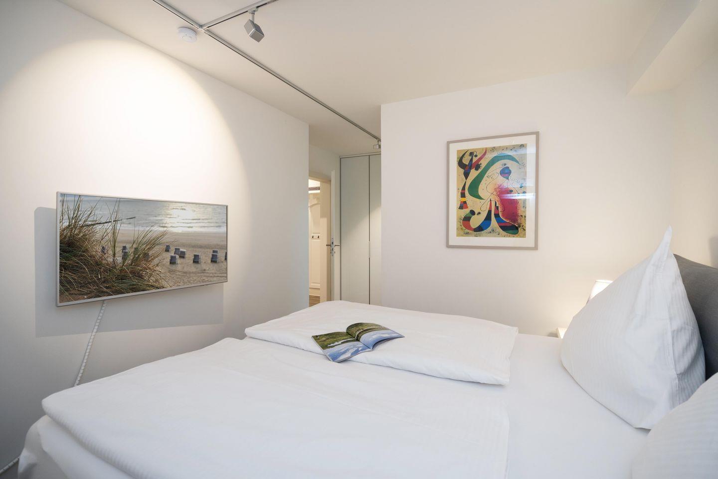 Drei Schlafräume, zwei Bäder und ein großzügiger Wohn- und Essbereich erstrecken sich auf 86,25 qm, garantieren Wohlfühlmomente und sorgen für ein erholsames Urlaubsvergnügen. Im Wohn- und Essbereich befindet sich eine hochwertige Küchenzeile im U-Format, die durch Großzügigkeit und Ausstattung besticht. Hochwertiges Geschirr, edle Töpfe, Kaffee-/Smoothie-Maschinen, Wasserkocher, Toaster, Mixer, Espresso-Maschine, Mikrowelle, Geschirrspüler, Kühl-/Gefrierschrank, Backofen, Getränkekühler und Ceranfeld sind vorhanden. Die drei Schlafräume im Souterrain sind alle mit Ruf-Boxspringbetten ausgestattet, wobei der On Suite Bereich über ein separates Bad inkl. einem Einbauschrank verfügt. Zwei Zimmer teilen sich ein Bad. Die beiden Hauptschlafzimmer sind mit einem Boxspringbett 1,80m x 2,00m ausgestattet, während das dritte Schlafzimmer über 2 Einzelbetten, die zusammengestellt werden können, verfügt.
