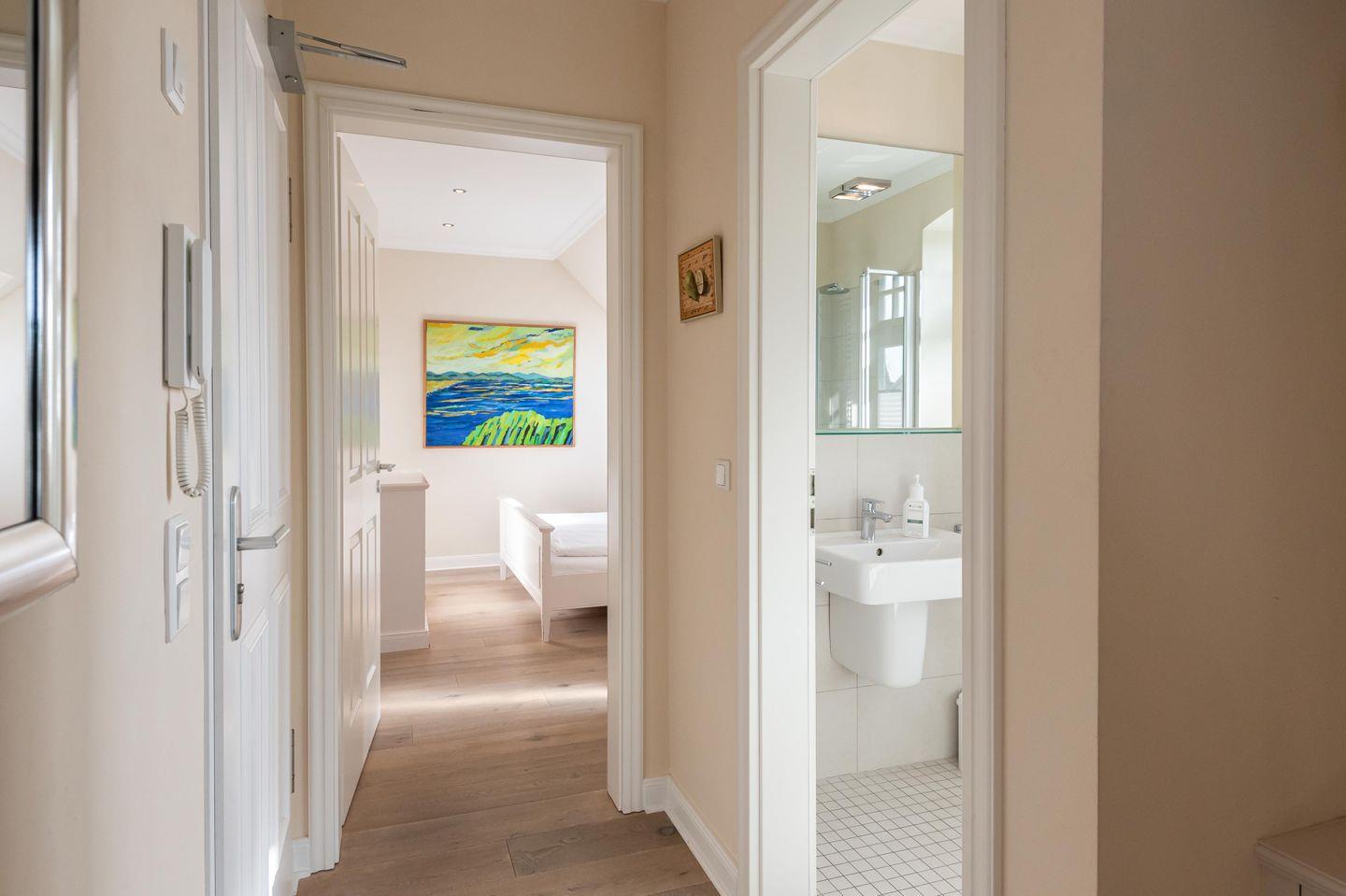 Die Seele baumeln und den Alltag hinter sich lasse. Genau dafür ist die exklusive, hochwertig eingerichtete 2-Zimmerwohnung in der Villa Meerglück wie geschaffen. Der mit 56 m² großzügig vorhandene Wohnraum beglückt bis zu 4 Personen.