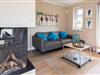 Koch-/Wohn-/Essbereich: Geräumige Ebene mit einem liebevoll eingerichteten Wohnbereich. Der Gas-Kamin lädt hier zu entspannten Stunden auf dem Sofa ein. Ihre Mahlzeiten genießen Sie am Essplatz direkt am Fenster. Die angrenzende Einbauküche mit Fenster ist modern und umfangreich ausgestattet.