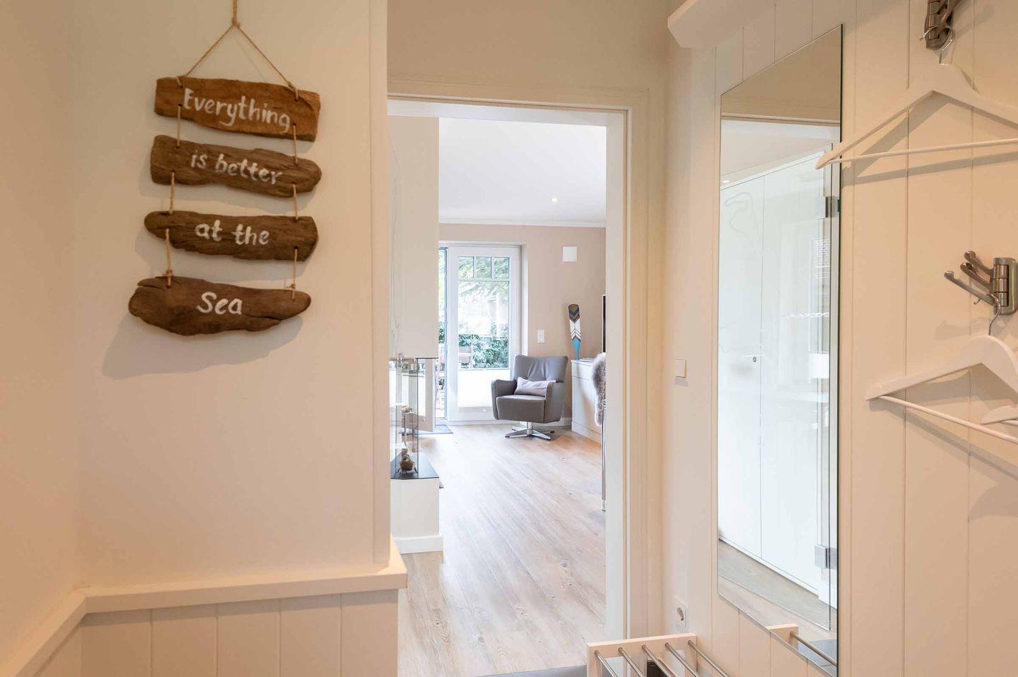 Dieses moderne Domizil liegt zentral in Westerland. Sie betreten den schönen Eingangsbereich mit Garderobe und angrenzendem Gäste-WC.