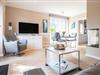Vom Wohnzimmer aus gelangen Sie auf die möblierte Terrasse.