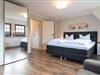 Schlafzimmer 1: Doppelbettschlafzimmer mit Boxspringbett (1,60 x 2,00m), Schrank und TV.