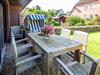 Vom Wohn-/Esszimmer gelangen Sie auf die möblierte West-Terrasse und in den schönen Garten, der komplett mit einem sylt-typischen Friesenwall eingefriedet ist.