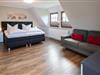 Schlafzimmer 2: Doppelbettschlafzimmer mit Boxspringbett (1,80 x 2,00m), Schrank, TV und Sofa (kein Schlafsofa).