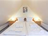 Im Obergeschoss gehen Küche, Essbereich und Wohnzimmer fließend ineinander über. Füße hoch und einfach mal abschalten – auf der großen Couch ein Leichtes. Noch kuscheliger wird es nur im Dachgeschoss, wo man aus dem bequemen Doppelbett himmlische Aussichten genießen kann.