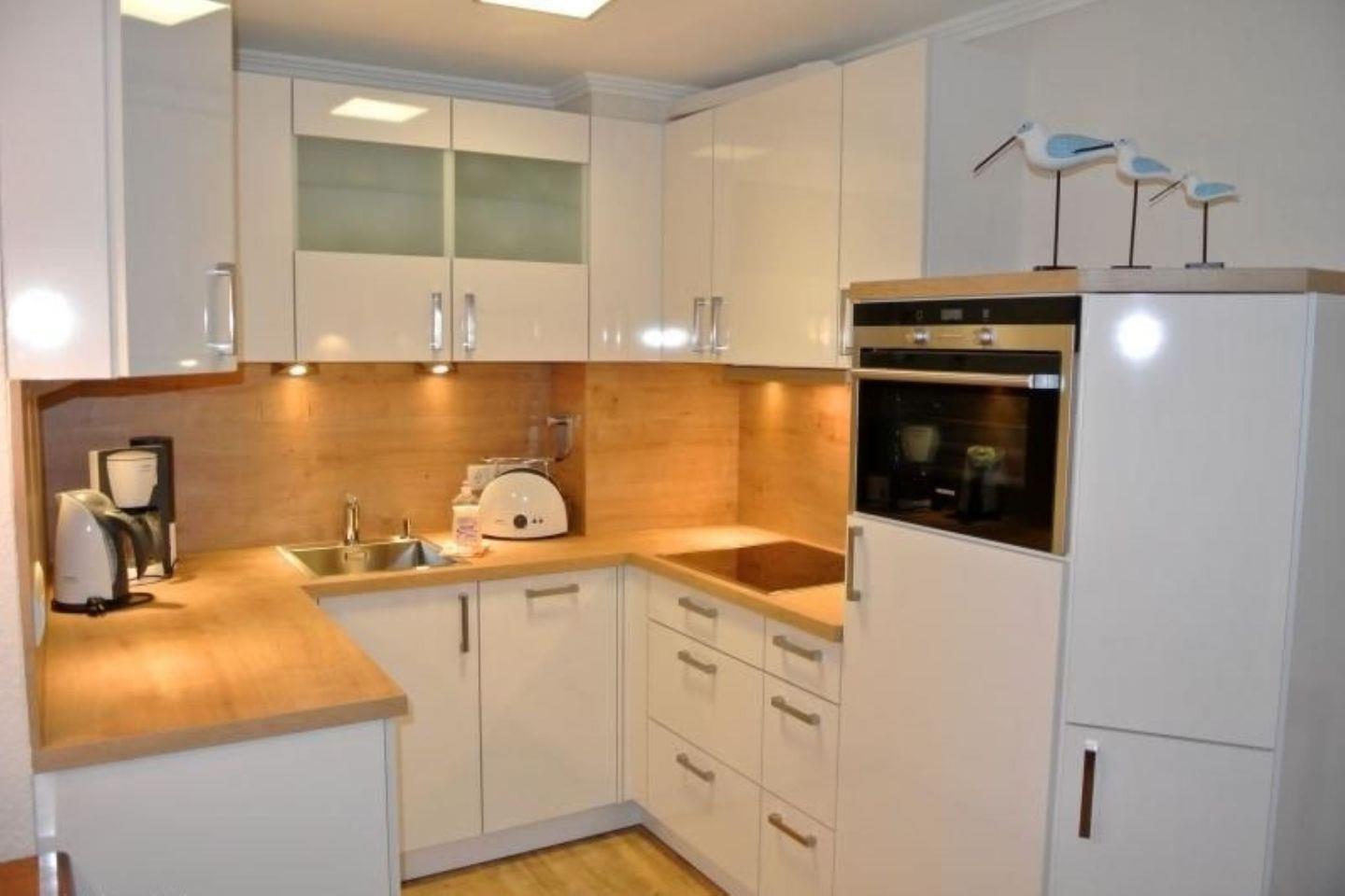 Das Apartment besteht aus insgesamt zwei Zimmern, darunter ein separates Schlafzimmer mit optimalen Schlafmöglichkeiten für zwei Personen. Das offene Raumkonzept der Wohnküche zum Wohnzimmer sorgt für ein großzügiges Wohngefühl. Die Küche ist modern und umfassend ausgestattet: Sie verfügt über einen Ceranherd, Backofen, Kühlschrank mit Gefrierfach, Spülmaschine, Geschirr und Besteck, Kaffeemaschine, Wasserkocher, Toaster sowie einen Eierkocher. So sind Sie bestens gerüstet, auch im Urlaub mühelos selbst zu kochen.