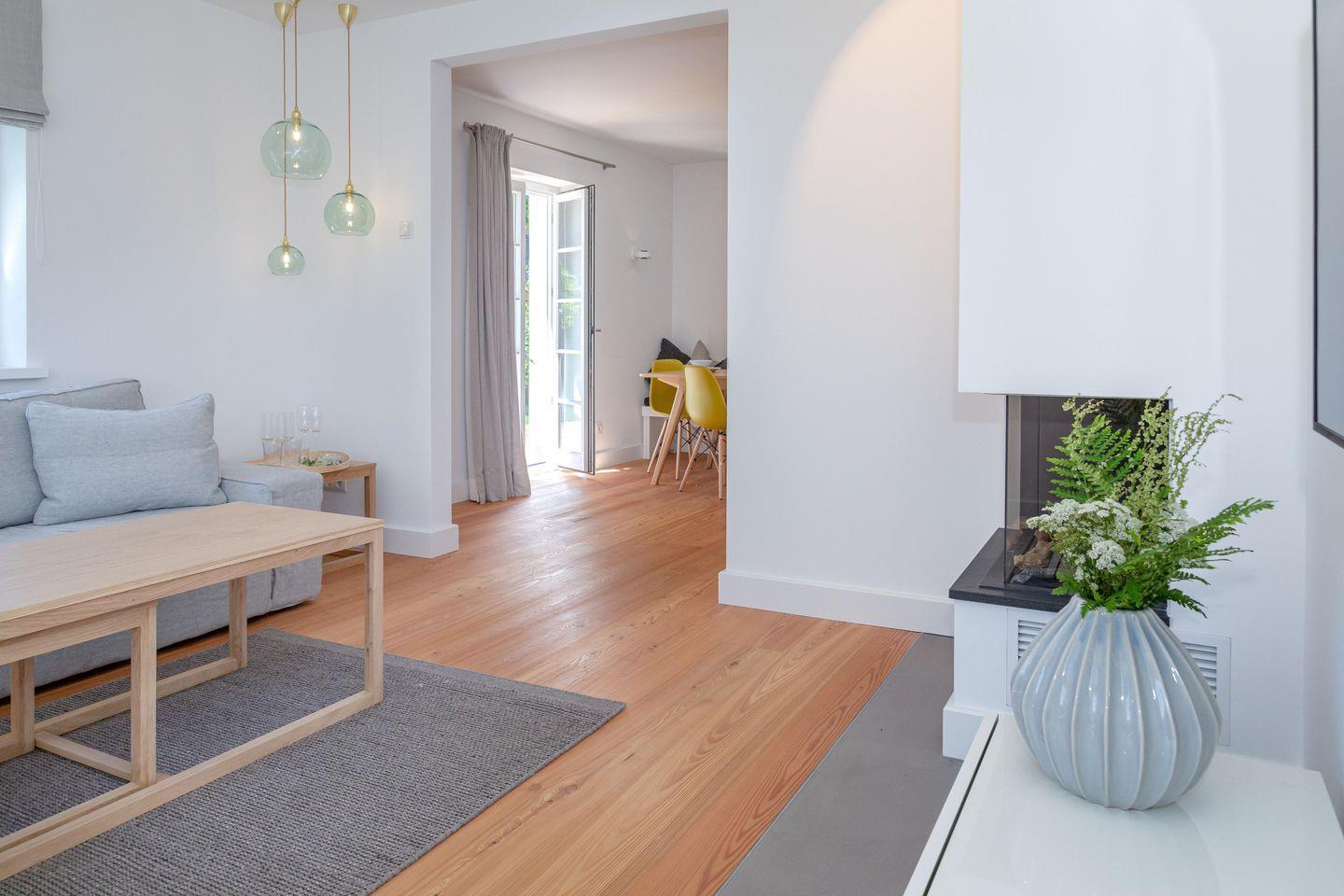 Das geräumige Wohnzimmer mit Sofa, Sessel, TV und einem Gaskamin bietet den idealen Raum für entspannte Abende. Die Essecke lädt zu geselligen Stunden ein. Von hier aus gelangen Sie direkt auf die liebevoll angelegte Terrasse und den schönen Garten, die besonders im Sommer ein Highlight sind.
