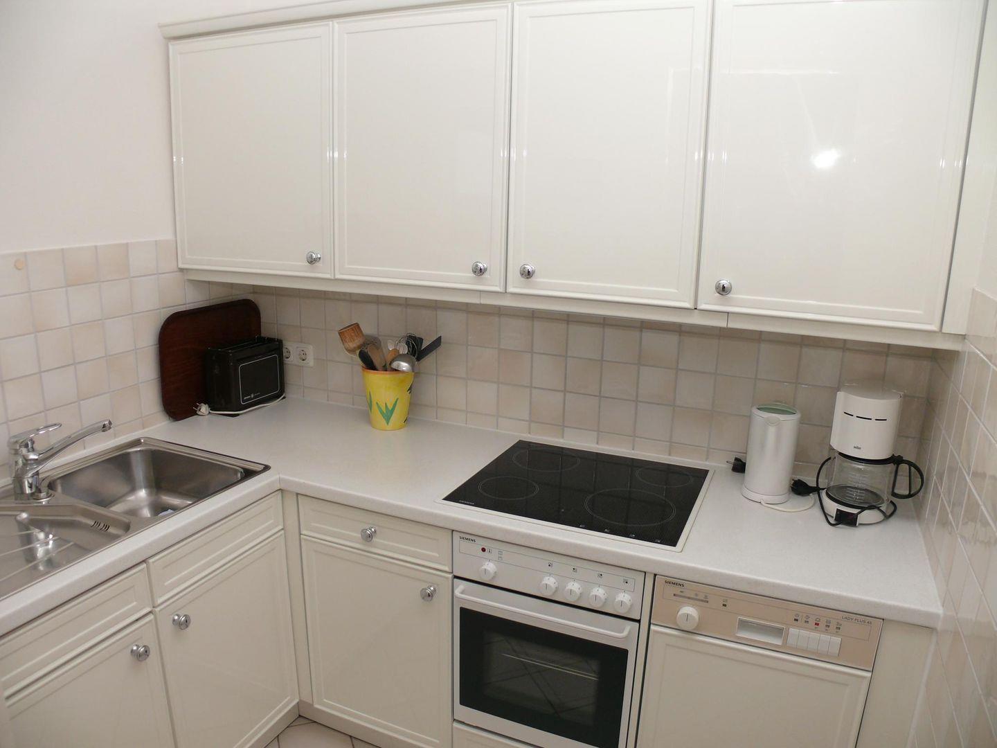 • Küche: Kleine, separate Küche mit Fenster, mit Geschirrspüler, Kochfeld, Mikrowelle, Backoffen, Kühlschrank mit Gefrierfach