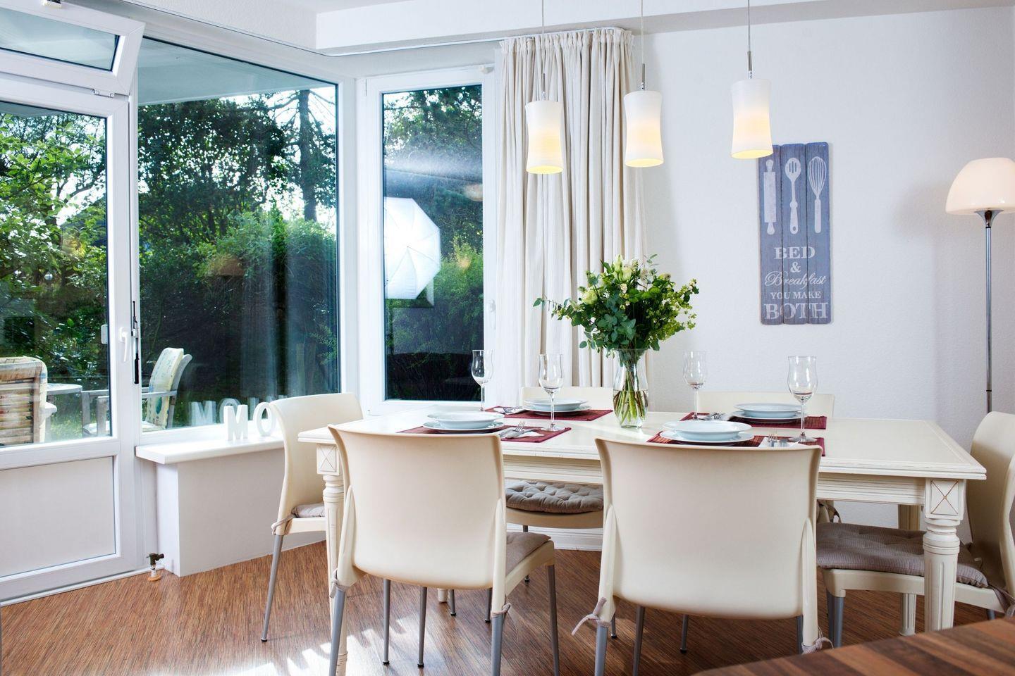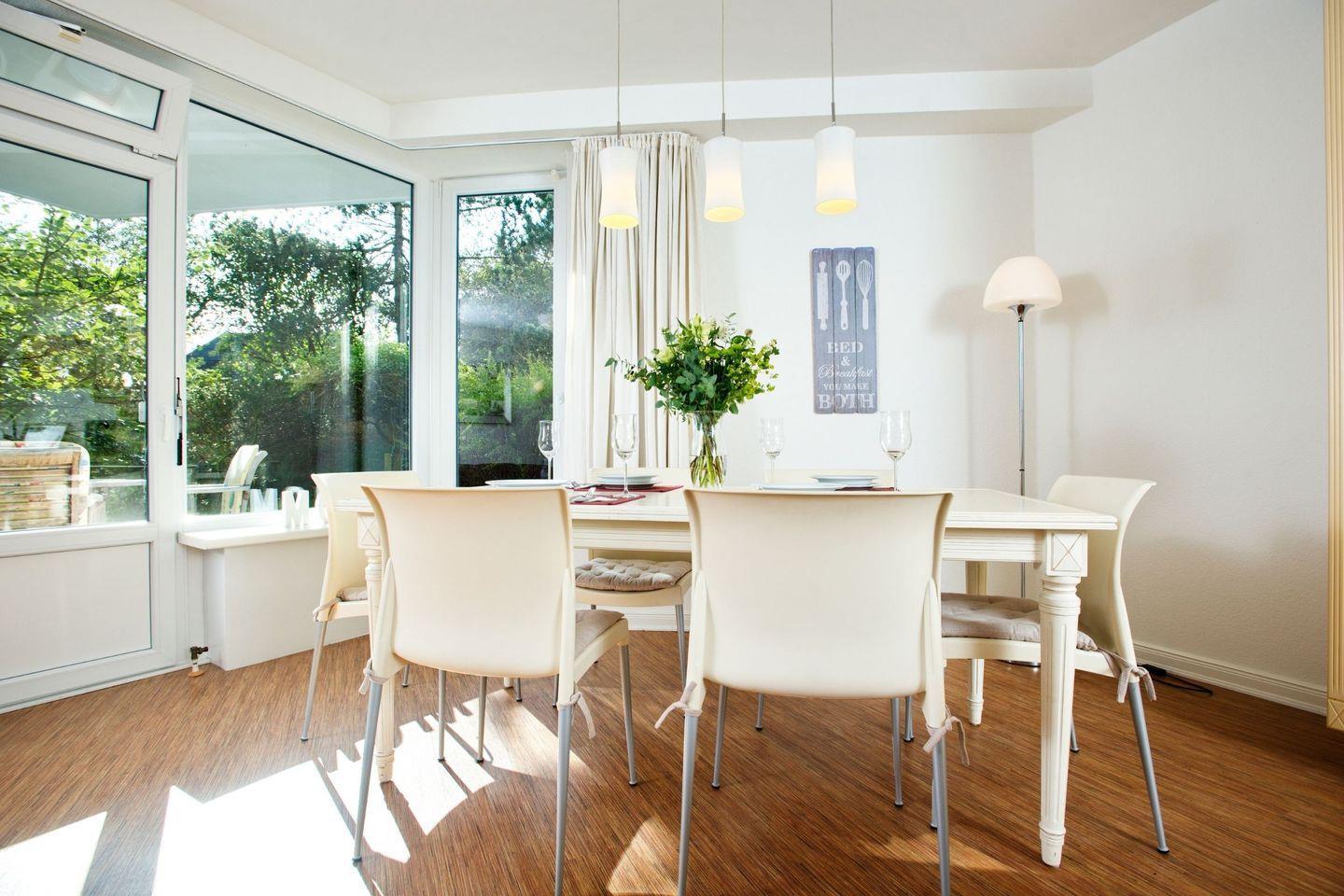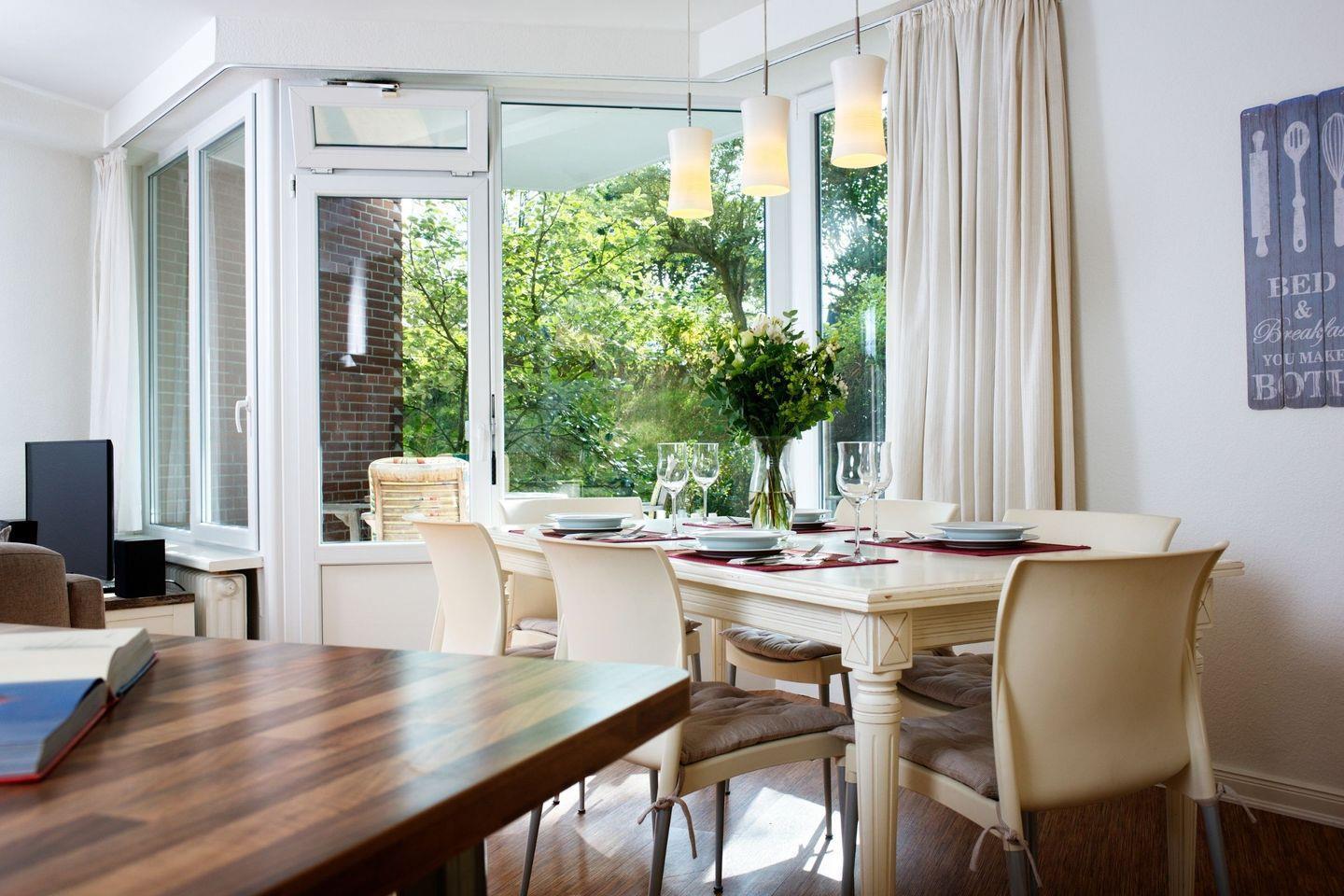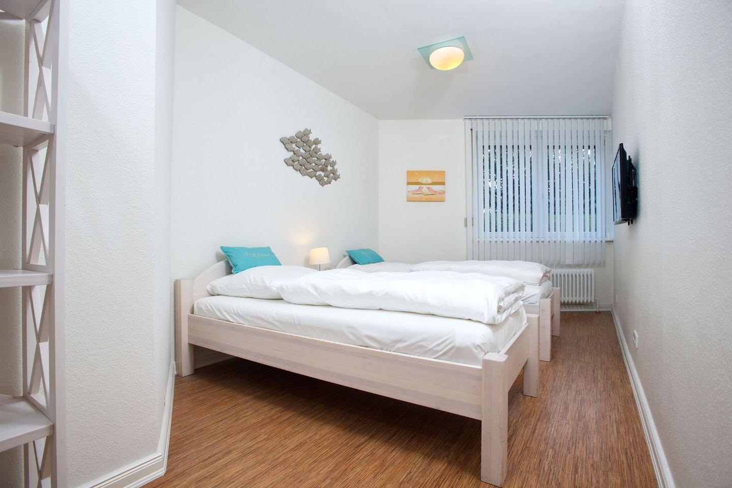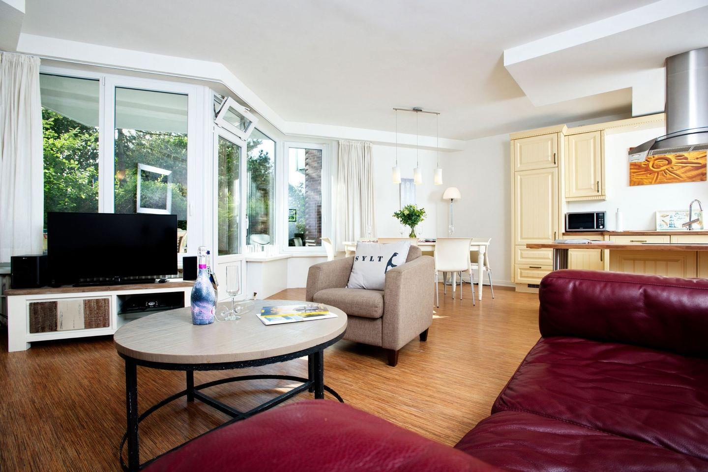 Über eine Treppe nach unten gelangen Sie ins Gartengeschoß (Tiefparterre) des Hauses, in der diese geräumige 3- Zimmer- Ferienwohnung (93 qm) liegt. Die Ferienwohnung liegt strandnah und wenige Fußminuten vom Stadtkern entfernt in einer Appartementanlage in Westerland. Die helle, großzügig geschnittene Ferienwohnung verfügt über eine offene Landhausküche mit einem Backofen und einem Ceranfeld sowie eine komfortable Kochinsel welche das Herz von Hobbyköchen höher schlagen lässt. Der angrenzende gemütliche Wohn-/Essbereich ist großzügig gestaltet und lässt keine Wünsche offen. Von hier aus gelangen Sie auf die Terrasse. Weiter erwarten Sie zwei Schlafzimmer, mit je einem Boxspringbett für zwei Personen und zwei Einzelbetten, sowie zwei moderne Duschbäder/WC. Waschmaschine und Trockner sind kostenpflichtig im Gemeinschaftsraum des Hauses zugänglich. Ein Parkplatz befindet sich am Haus. Tiere sind hier nicht erlaubt.