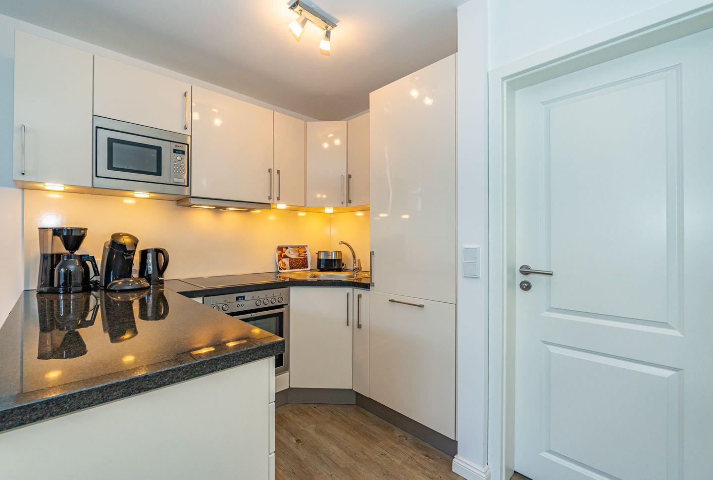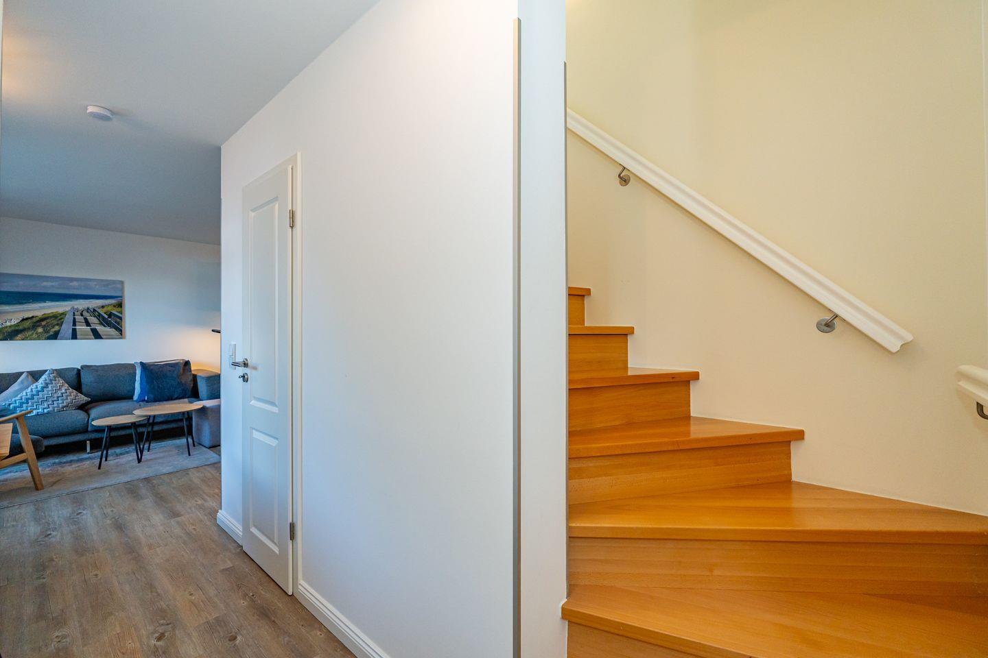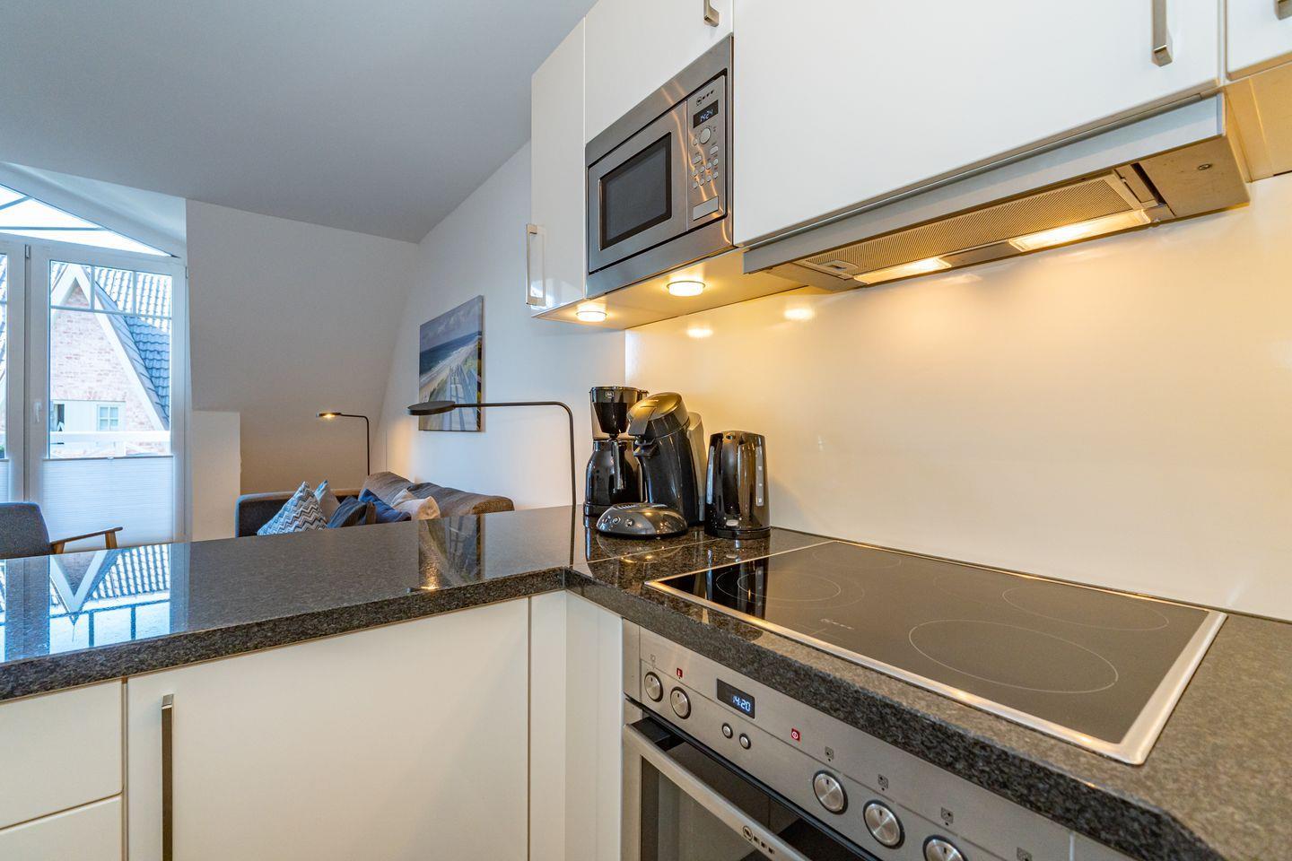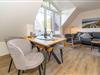 Diese 3-Zimmer-Ferienwohnung (ca. 77 qm) in einem kleinen Ferienhaus mit sechs Wohneinheiten liegt an der Ortsgrenze von Westerland zu Wenningstedt. Ein Bäcker, ein Lebensmittelgeschäft, ein Fahrradverleih und eine Bushaltestelle sind fußläufig sehr gut zu erreichen. Im 1 OG erwartet Sie ein moderner Wohn- / Essbereich mit TV von wo Sie Zugang zum Westbalkon haben, wo Sie auch noch am Nachmittag die Sonne genießen können. Ein Schlafzimmer mit gemütlichen Doppelbett (180 x 200 cm) und ein Badezimmer mit Wanne, Dusche, WC und Waschtrockner befinden sich ebenfalls auf dieser Ebene, genauso wie die moderne, offene Küche. Über eine Treppe gelangen Sie in das Dachgeschoss. Dort befindet sich das zweite Schlafzimmer mit Kojenbett (160 x 200 cm) und das angrenzende, kleine Badezimmer mit WC und Waschtisch. Beide Schlafzimmer verfügen über einen Fernseher. In der Ferienwohnung sind hochwertige, weiße Tischlereinbauten vorhanden für viel Stauraum. Ein Pkw-Stellplatz befindet sich am Haus. Tiere sind in dieser Ferienwohnung nicht erlaubt.