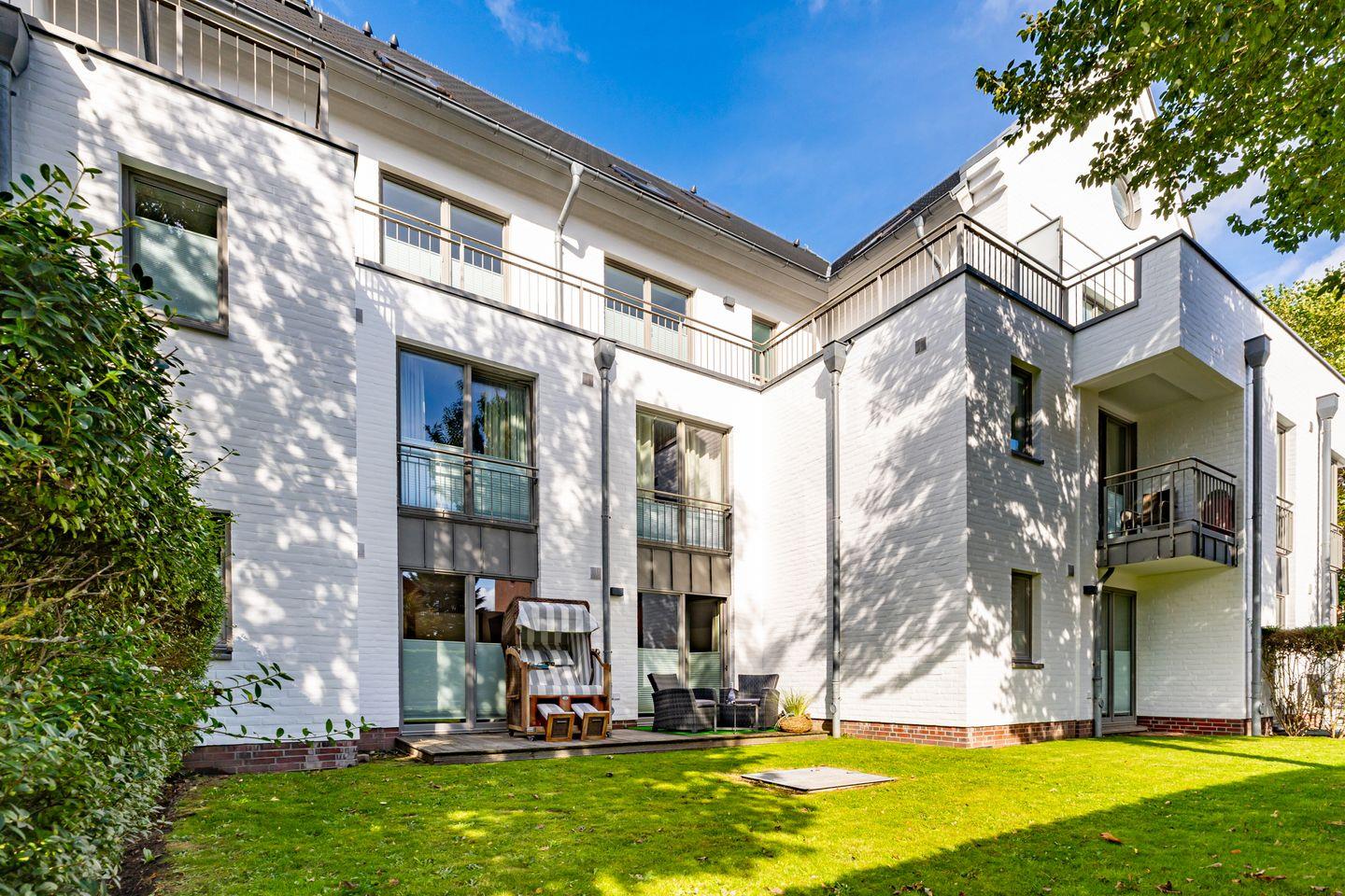 Die Stadtresidenz Nr. 4 in Westerland bietet auf 78 m² eine komfortable Ferienwohnung mit zwei Schlafzimmern, einer Kochnische und einer Terrasse mit Gartenblick. WLAN, TV und eine moderne Ausstattung gehören ebenso dazu wie ein Privatparkplatz. Nur 700 m vom Sandstrand entfernt, sind Einkaufsmöglichkeiten und Restaurants fußläufig erreichbar. Haustiere sind bis zwei erlaubt, Kinder willkommen.