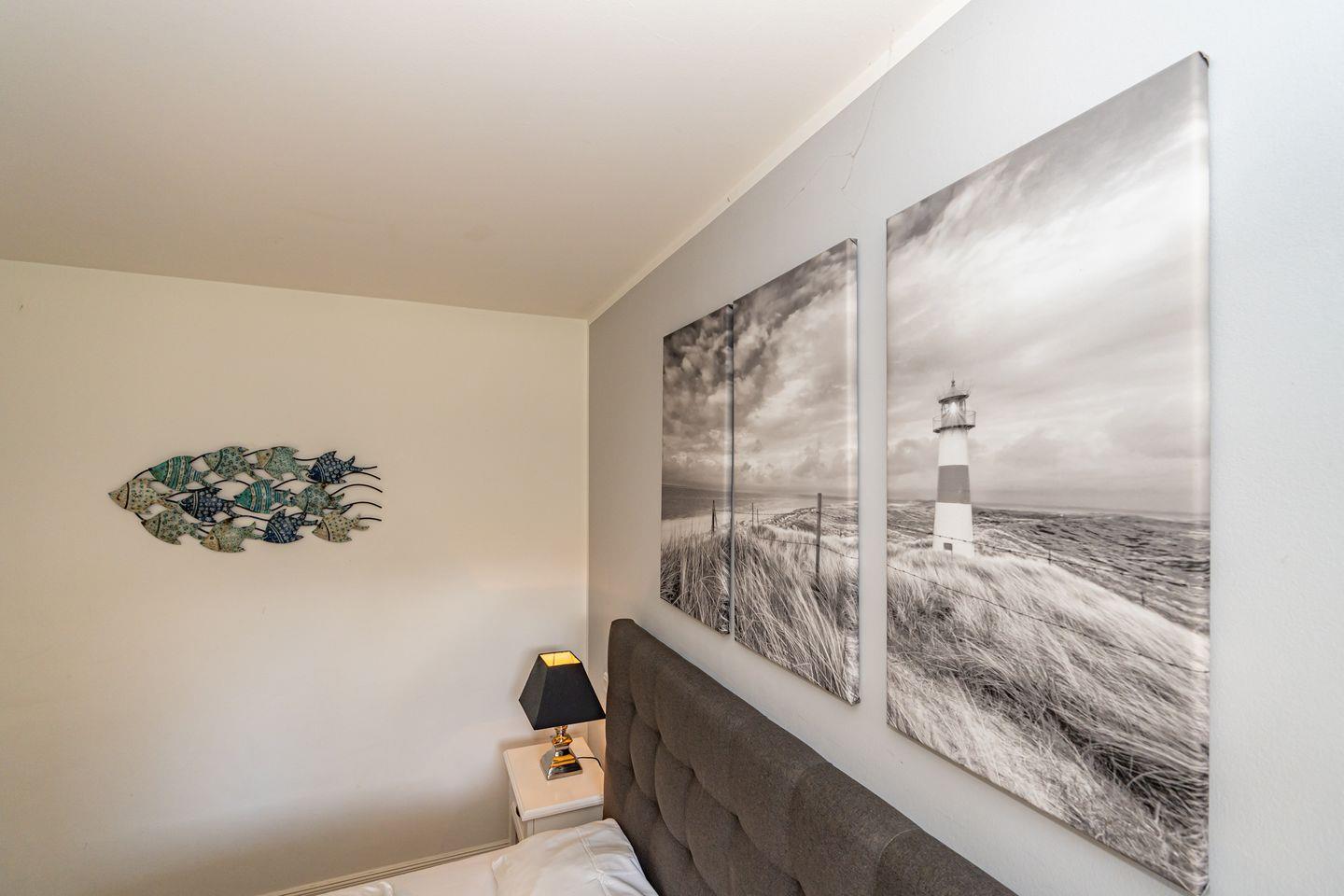 Diese 3-Zimmer-Ferienwohnung (78 qm) befindet sich in einem Gebäude mit 22 Wohneinheiten. Die ebenerdige Ferienwohnung im Erdgeschoss besticht durch den großen, geräumigen Flur mit Einbaugarderobe und dem hellen, großzügigen Wohnzimmer mit Flachbildschirm und Esstisch. Die komplett ausgestattete und offene Küche (Mikrowelle, Kaffeefiltermaschine, Kühlschrank, Cerankochfeld, Backofen) ist direkt durch einen großen Durchgang vom Wohnzimmer aus zu erreichen. Von dort gelangen Sie in den Abstellraum, dort stehen Ihnen Waschmaschine und Trockner zur Verfügung. Das Badezimmer verfügt über einen Handtuchtrockner und eine bodentiefe Dusche. Abgerundet wird die Wohnung mit einer Terrasse (Süd-West-Ausrichtung), welche vom Wohnzimmer aus zu betreten ist und mit einem kleinen Gartenanteil umrundet wird. Ihnen stehen zwei Schlafzimmer mit jeweils Boxspringbett und TV zur Verfügung. Die Ferienwohnung liegt im Herzen von Westerland und ist somit auch sehr Stadt- und strandnah gelegen. In dieser Nichtraucherwohnung sind guterzogene Hunde nach vorheriger Anmeldung erlaubt (10,- € pro Tier/Tag). Ein Pkw-Stellplatz befindet sich in der Tiefgarage (Durchfahrtshöhe max. 2 Meter).