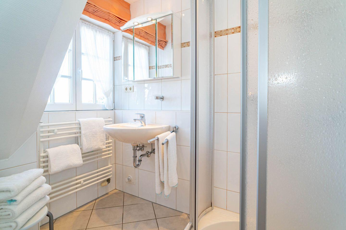 Diese 3- Zimmer-Ferienwohnung (ca. 65 qm) in einer Doppelhaushälfte im Landhausstil im OG und DG befindet sich im Norden von Westerland und bietet Platz für bis zu vier Personen. Buchen Sie die untere Wohnung Ammerland 1 mit und Sie haben Platz für 8 Personen. Nach Eintritt in die Ferienwohnung gelangen Sie direkt in den hellen Wohnraum (Flachbildschirm, Blu-ray-Player, Stereoanlage, CD-Player) mit hochwertiger Couchgarnitur und Essplatz mit ergonomischen Lederstühlen. Daran grenzt eine offene, komplett ausgestatteter Küche (Ceranfeld, Backofen, Mikrowelle, Espressomaschine (Nespresso), Filtermaschine, Geschirrspülmaschine, Kühlschrank (mit Tiefkühlfach) in der es Ihnen an nichts fehlt. Von hier aus betreten Sie, den nach Süden ausgerichteten, möblierten Balkon. Dieser lädt zum gemütlichen, gemeinsamen Verweilen ein. Auf dieser Ebene befindet sich ebenfalls eines der wohnlichen Doppelbettschlafzimmer und ein Badezimmer mit Dusche und WC, Handtuchtrockner und Fön. Über eine Treppe gelangen Sie in das Dachgeschoss mit dem zweiten Doppelbettschlafzimmer. Neben Bügelbrett und Bügeleisen gehören natürlich auch eine Waschmaschine und ein Trockner zur Ausstattung. Bitte beachten Sie, dass diese Ferienwohnung eine Nichtraucherwohnung ist und die Haustierhaltung nicht gestattet ist. Ein Pkw-Stellplatz ist am Haus verfügbar.