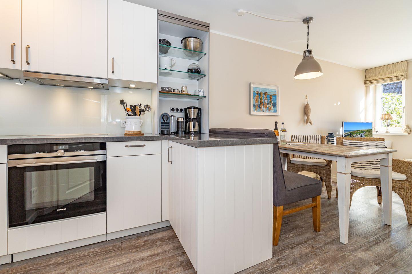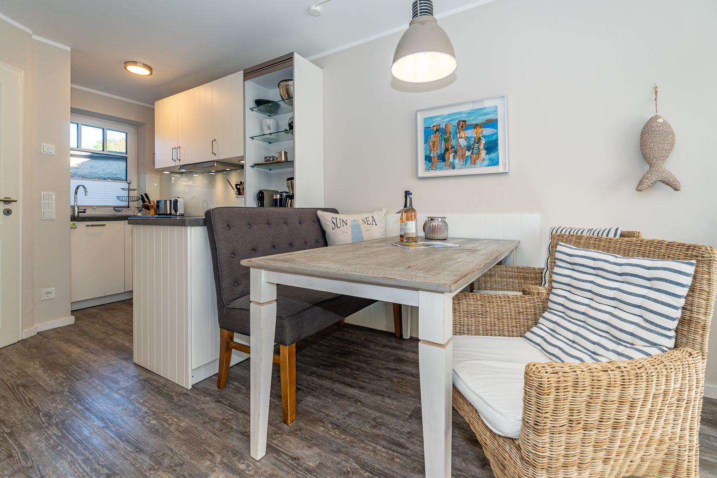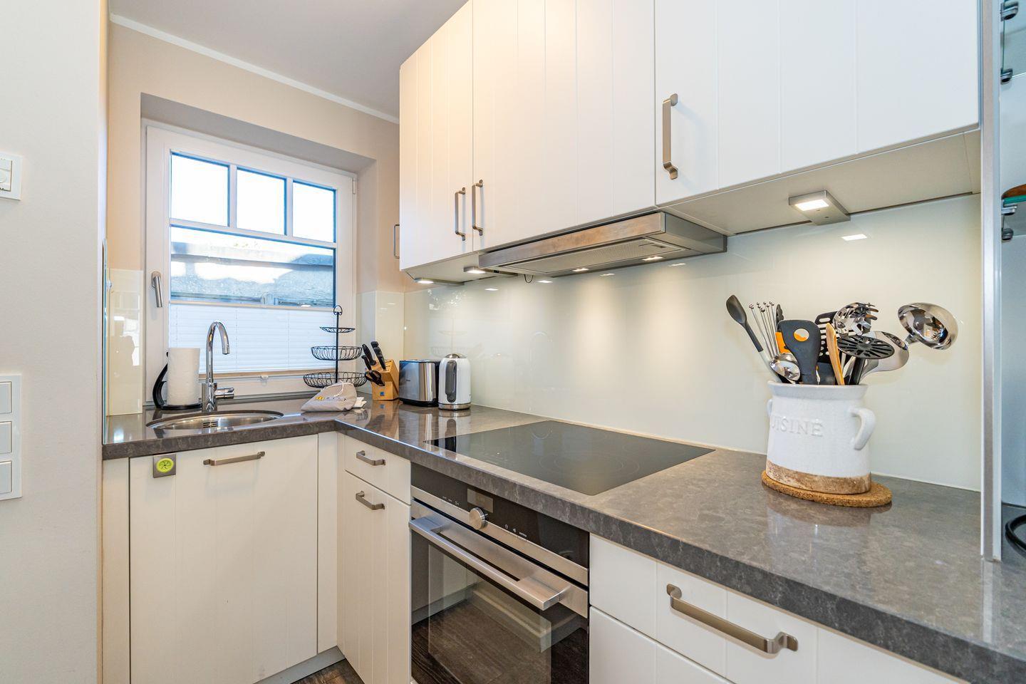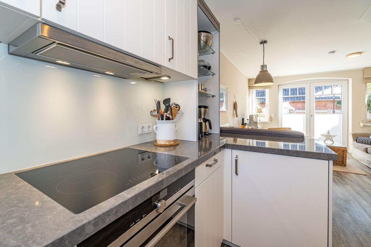 Das Ferienhausteil erstreckt sich über zwei Ebenen (ca. 58 qm, EG,OG) und bietet bis zu zwei Erwachsenen und ein Baby bis 3 Jahre genügend Raum für eine erholsame Auszeit. Im Erdgeschoss befindet sich ein Gäste-WC, sowie der offen gestaltete Küchenbereich mit hochwertigen Einbaugeräten inkl. Nespresso Maschine, Geschirrspüler und Backofen. Dort angrenzend befindet sich der Wohn- und Essbereich mit Flatscreen und Soundsystem und direktem Zugang zu Terrasse und Garten. Die Sonnenterasse in Südausrichtung mit Möblierung und Strandkorb (saisonal) lädt zum Entspannen und Genießen ein. Über eine Treppe gelangt man in das erste Obergeschoss mit dem gemütlichem Schlafzimmer, selbstverständlich mit einem Boxspring-Bett (180 x 200 cm), hochwertigen Einbauten und Flatscreen. Auf dieser Ebene befindet sich ein modernes Badezimmer mit bodentiefer Dusche und Waschmaschine. Ein PKW Stellplatz ist am Ferienhaus verfügbar. Die tolle Lage vereint Ruhe und Privatsphäre und ist doch wunderbar zentral gelegen. Bitte beachten Sie das diese Ferienwohnung eine Nichtraucherwohnung ist und die Haustierhaltung nicht gestattet ist.