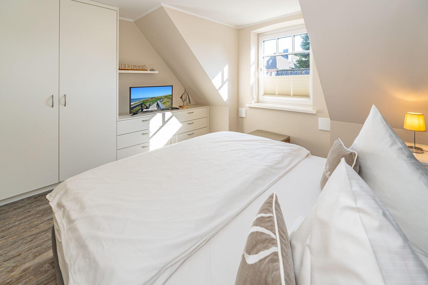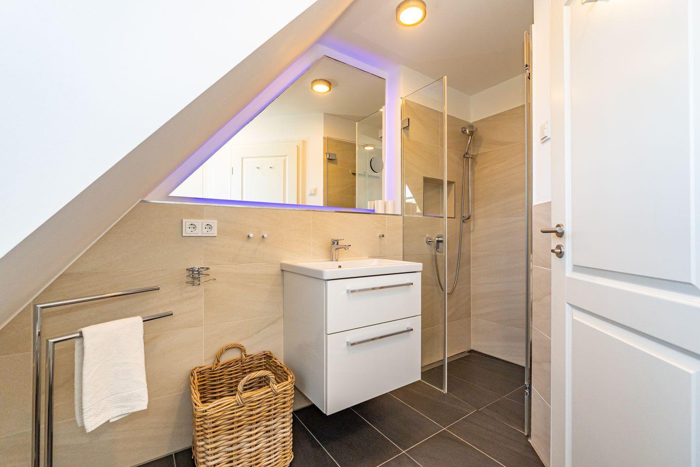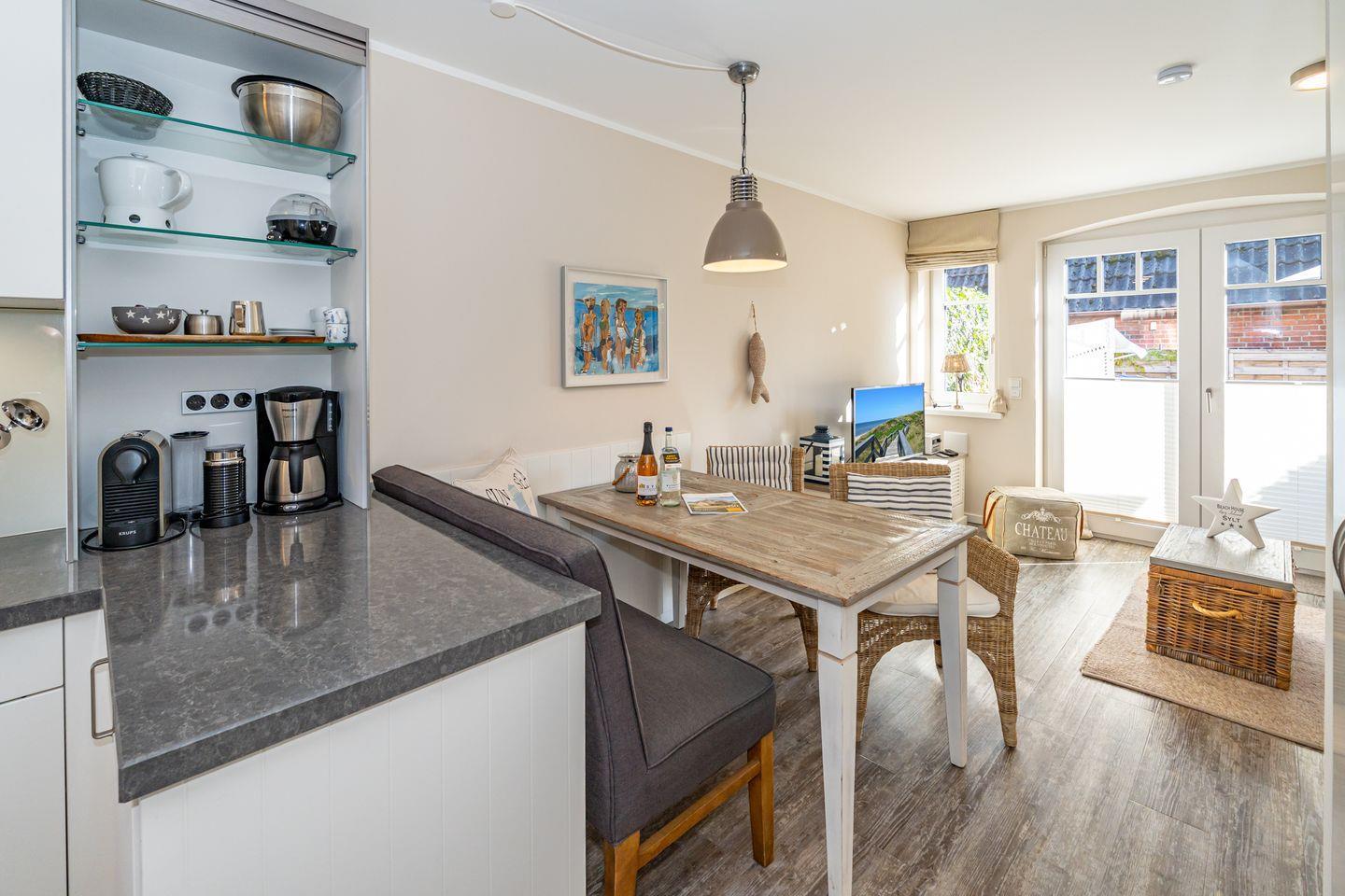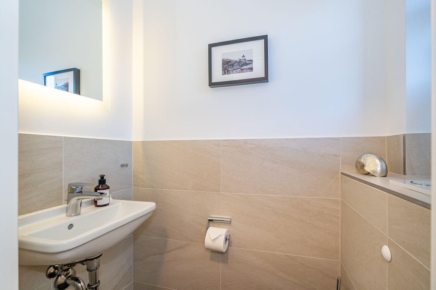 Das Ferienhausteil erstreckt sich über zwei Ebenen (ca. 58 qm, EG,OG) und bietet bis zu zwei Erwachsenen und ein Baby bis 3 Jahre genügend Raum für eine erholsame Auszeit. Im Erdgeschoss befindet sich ein Gäste-WC, sowie der offen gestaltete Küchenbereich mit hochwertigen Einbaugeräten inkl. Nespresso Maschine, Geschirrspüler und Backofen. Dort angrenzend befindet sich der Wohn- und Essbereich mit Flatscreen und Soundsystem und direktem Zugang zu Terrasse und Garten. Die Sonnenterasse in Südausrichtung mit Möblierung und Strandkorb (saisonal) lädt zum Entspannen und Genießen ein. Über eine Treppe gelangt man in das erste Obergeschoss mit dem gemütlichem Schlafzimmer, selbstverständlich mit einem Boxspring-Bett (180 x 200 cm), hochwertigen Einbauten und Flatscreen. Auf dieser Ebene befindet sich ein modernes Badezimmer mit bodentiefer Dusche und Waschmaschine. Ein PKW Stellplatz ist am Ferienhaus verfügbar. Die tolle Lage vereint Ruhe und Privatsphäre und ist doch wunderbar zentral gelegen. Bitte beachten Sie das diese Ferienwohnung eine Nichtraucherwohnung ist und die Haustierhaltung nicht gestattet ist.