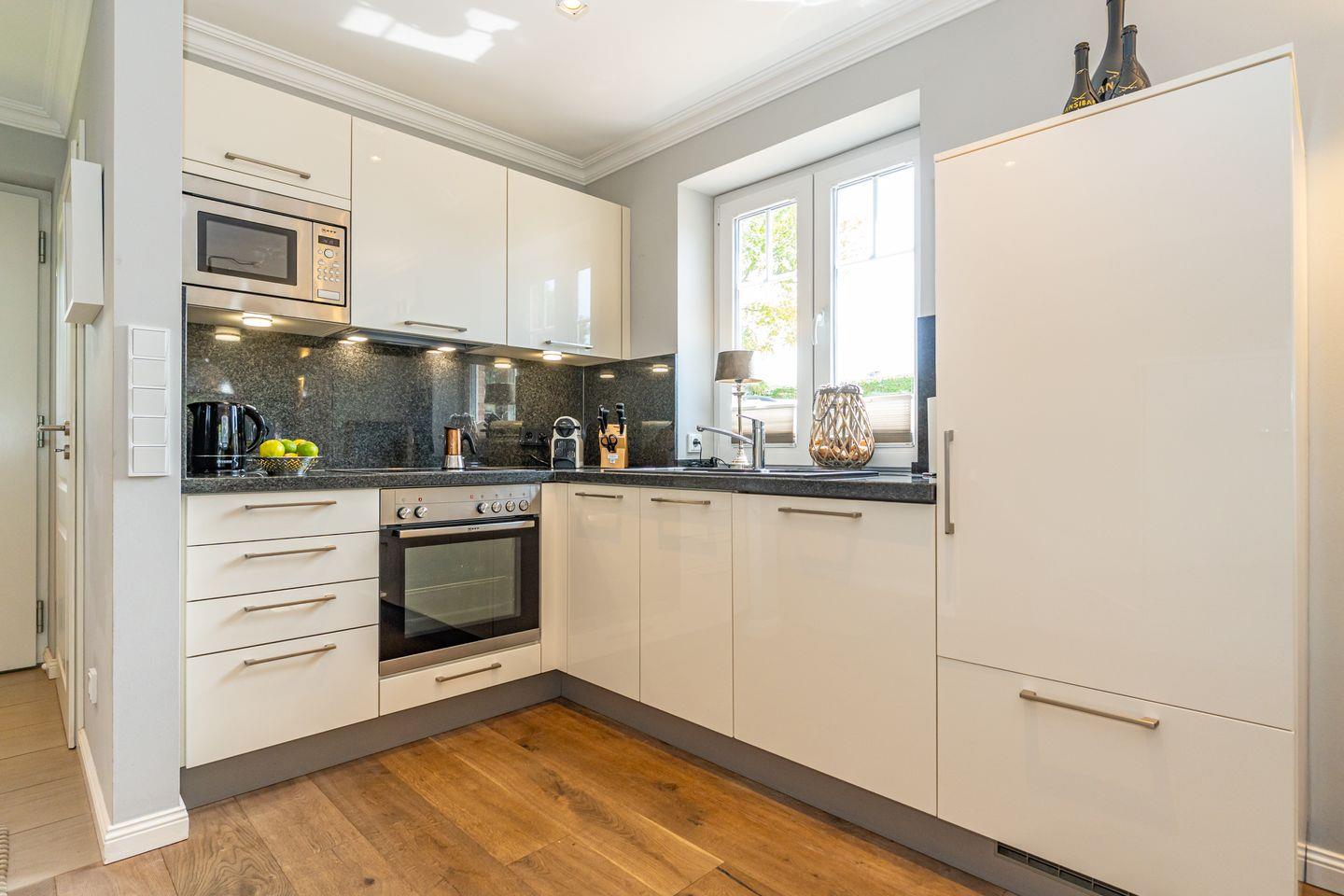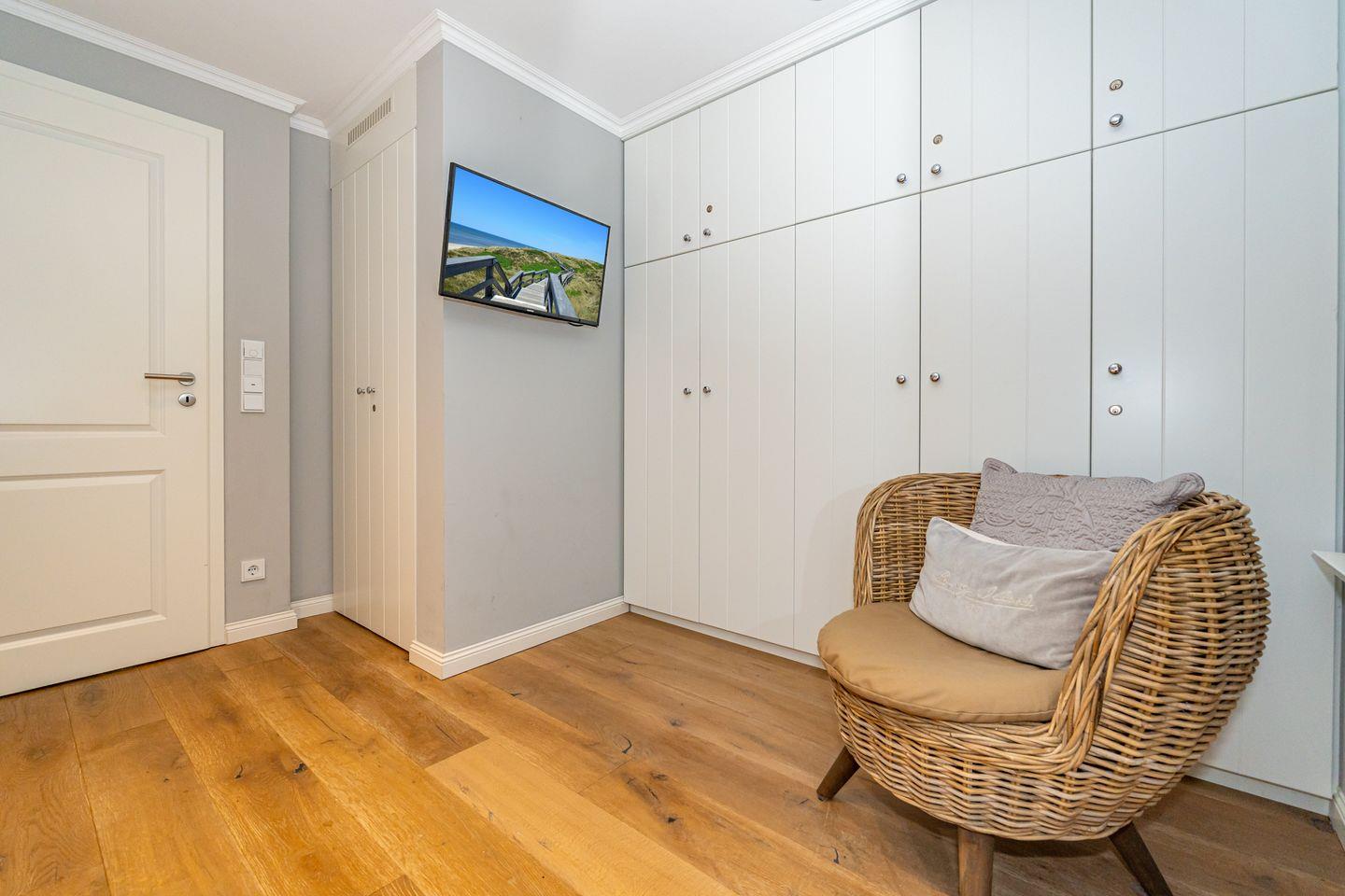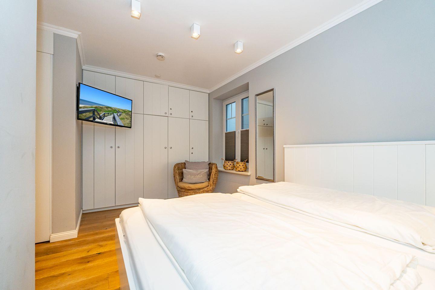 Die 3- Zimmer- Ferienwohnung (Endteil) (ca. 76 qm) in einem kleinen Ferienhaus mit sechs Einheiten befindet sich im Süden von Westerland. Im Erdgeschoss erwartet Sie ein gemütlicher Wohnbereich mit großem Flat-TV, Blue- Ray- Player und Wohlfühlsofa auf dem Sie Ihre Auszeit in vollen Zügen genießen können. Angrenzend daran befindet sich die vollausgestattete, hochwertige, offene Küchenzeile (Nespressomaschine, Kühlschrank mit Gefrierfach, Spülmaschine, Ceranfeld, Mikrowelle und Backofen) mit Essplatz. Auf dieser Ebene liegen zudem das Gäste-Bad mit bodengleicher Dusche und der Hauswirtschaftsraum mit Waschmaschine, Trockner, Garderobe und Schuhregal. In der Zeit von April bis Oktober stehen Ihnen hochwertige Gartenmöbel und ein Sylter Strandkorb zur Verfügung. Eine Etage tiefer, im Souterrain, befinden sich zwei Schlafzimmer mit unterschiedlich großen Einbaubetten: ein Doppelbett ist 180 x 200 cm groß, das andere Bett misst 140 x 200 cm. Beide Zimmer verfügen über einen Flatscreen, Leselampen und hochwertige, weiße Tischlereinbauschränke, die für genügend Stauraum sorgen. Ein weiteres Highlight in dieser Ferienwohnung ist die eigene Sauna mit großer Dusche und WC im Untergeschoss. Hier können Sie zu jeder Jahreszeit einen Saunagang genießen, um einfach mal abzuschalten. Die Lette Suite ist eine Nichtraucherwohnung und Ihren gut erzogenen, bis mittelgroßen Hund können Sie nach Anmeldung gerne mitbringen Ein guterzogener Hund ist nach vorheriger Anmeldung erlaubt (10,- € pro Tier/Tag). Bitte beachten Sie, dass wir keine Katzen aufnehmen können. Ein Pkw-Stellplatz ist am Haus verfügbar.