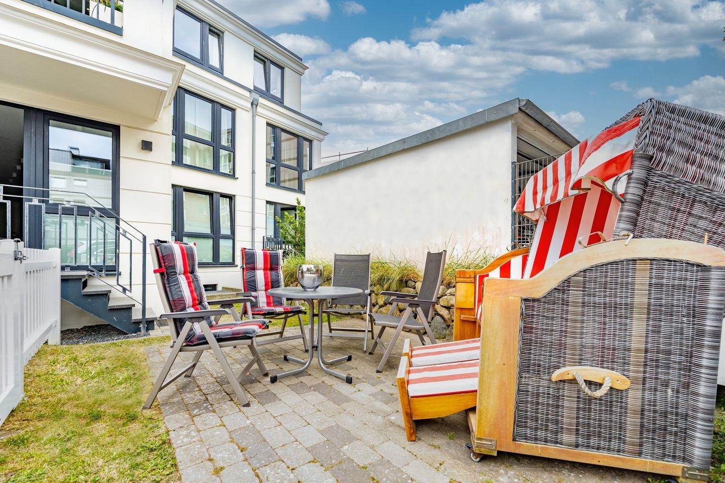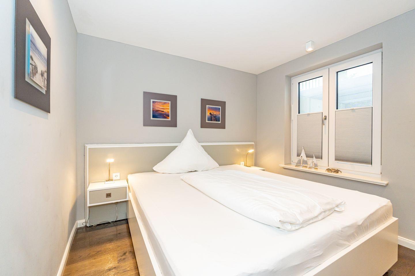 Die 3-Zimmer-Ferienwohnung teilt sich in Erdgeschoss und Untergeschoss auf. Das Erdgeschoss hat ein kombiniertes Wohn- & Esszimmer, das mit einer gemütlichen Sofalandschaft und Sessel, sowie einen TV und Esstisch ausgestattet ist. Von hier aus haben Sie Zugang zur westlich ausgerichteten Terrasse mit Gartenmöbeln und Strandkorb (saisonal). Die hochwertige, offene Küche ist ausgestattet mit einem Backofen, Geschirrspüler, Kaffeemaschine, Toaster und Wasserkocher. Auf der selben Ebene befindet sich ein Badezimmer mit Dusche und WC. Über eine Treppe gelangen Sie in das Untergeschoss. Hier befinden sich 2 geräumige Schlafzimmer mit Doppelbetten und TV. Ein Schlafzimmer hat einen begehbaren Kleiderschrank. In dem zweiten Duschbad mit WC stellen wir unseren Gästen eine Waschmaschine, einen Trockner, sowie eine Sauna zur Verfügung.