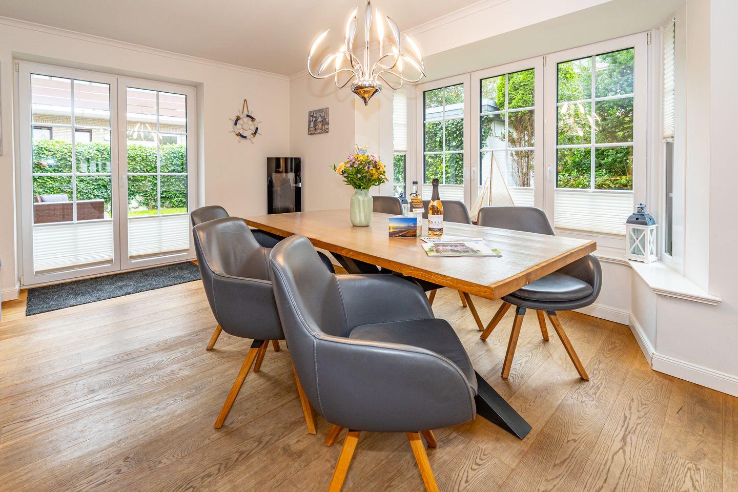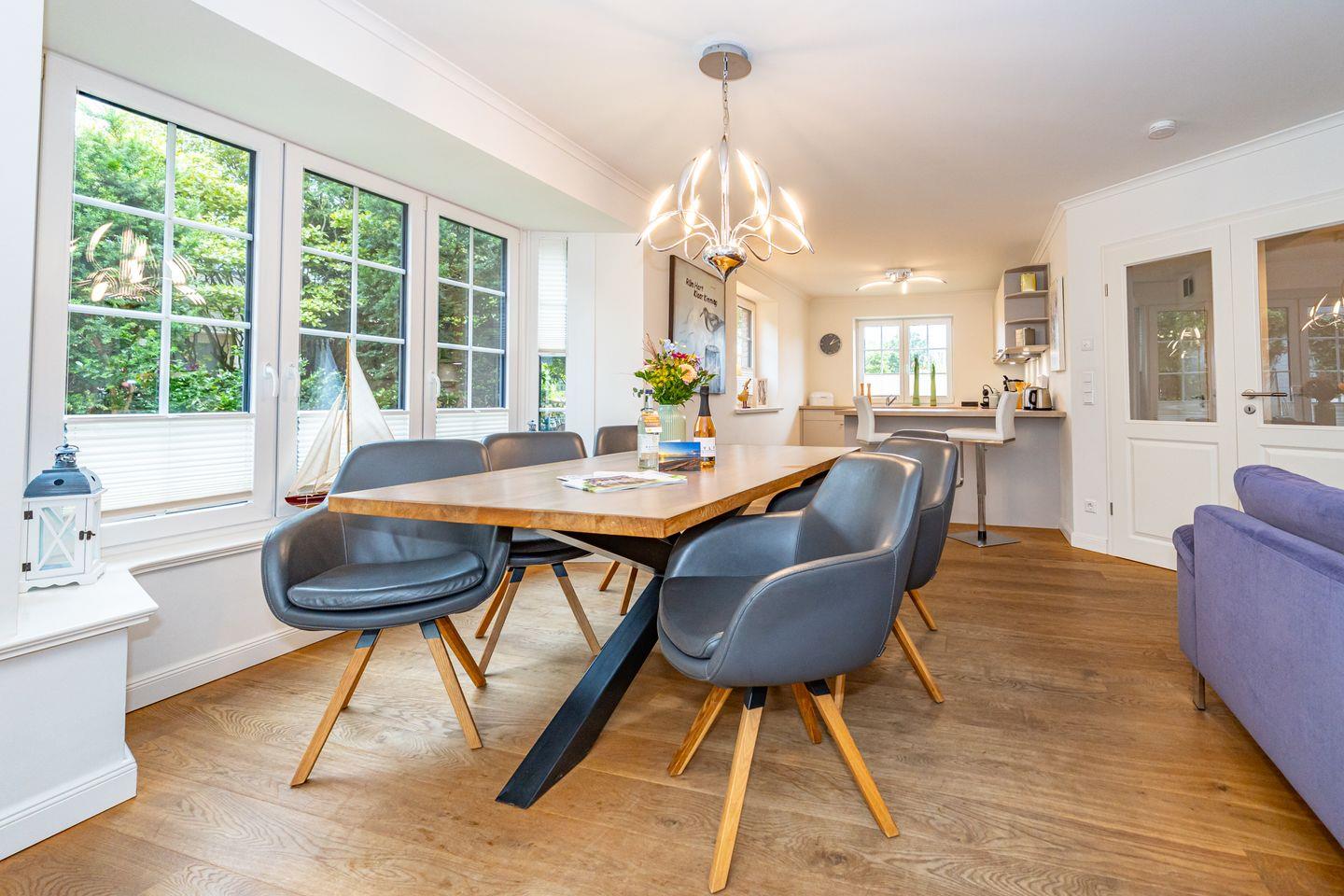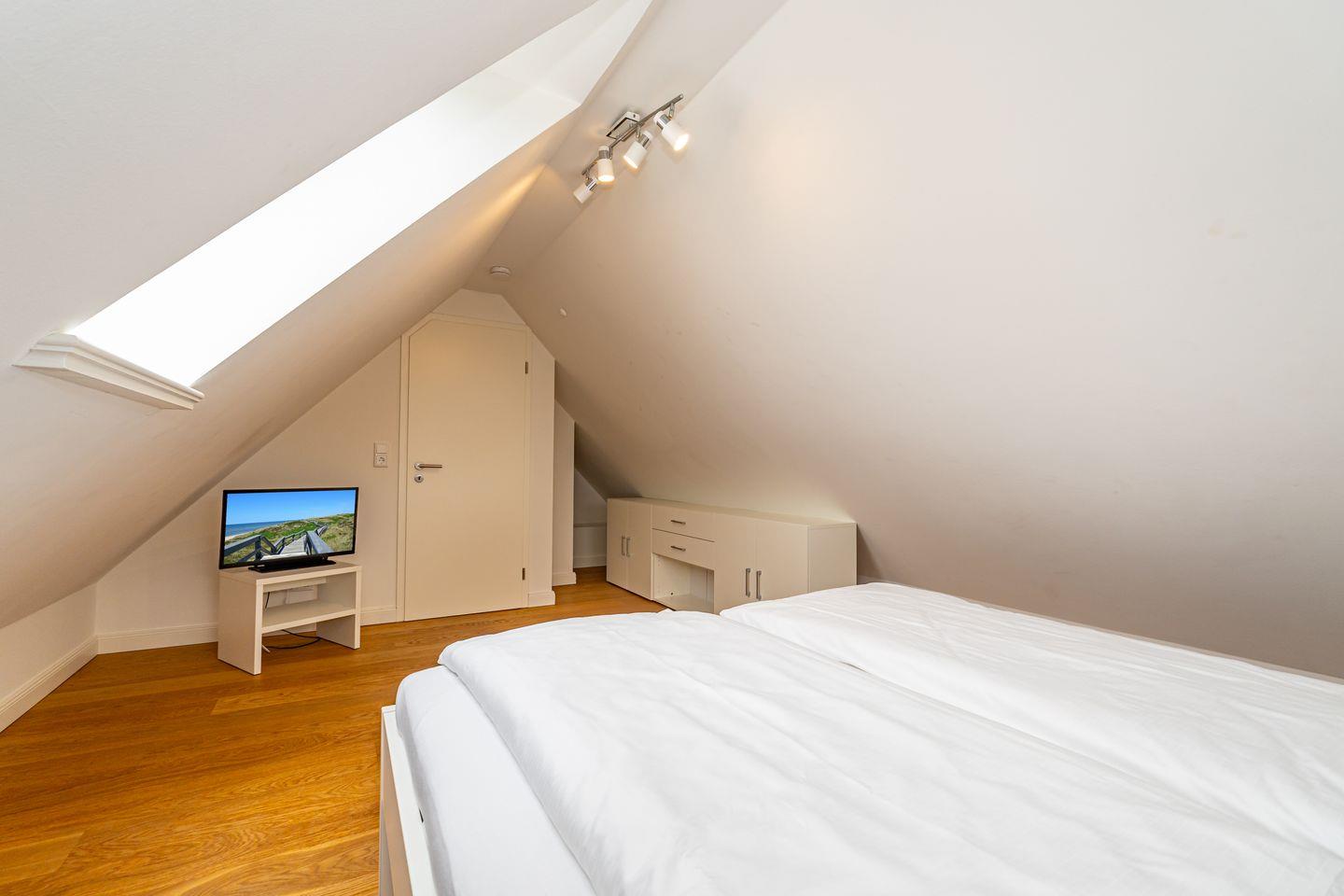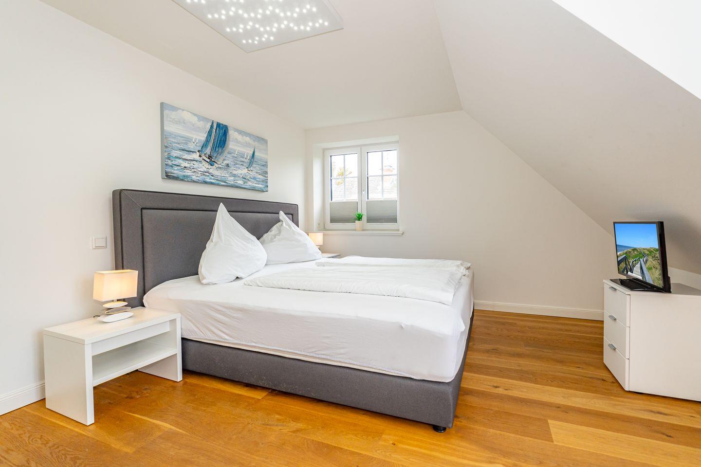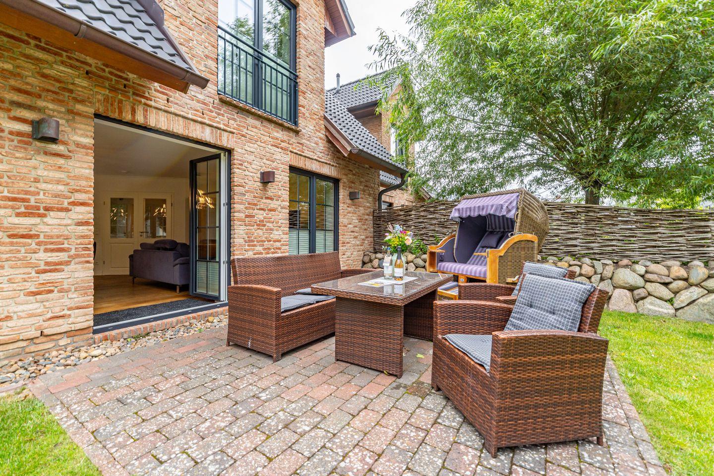 Durch die zentrale Lage der "Gode Stuv" haben Sie alle Möglichkeiten, die Insel Sylt zu erkunden. Schnell sind Sie auch fußläufig in der Westerländer Innenstadt und natürlich am wunderschönen Sandstrand. Eine gemütliche Sofalandschaft mit Elektrokamin und Blick in Ihren eigenen Garten mit Südwestterrasse, sind nur einige Höhepunkte der "Gode Stuv". Den Garten werden Sie schnell lieben lernen: Lädt Sie doch die eigene Blockhaussauna mitten im Garten zum entspannen ein. Genießen Sie auch den Strandkorb (saisonal) und die hochwertigen Lounge-Möbel. Die helle, offene Küche mit coolen Barhockern, lädt genauso wie der große Esstisch zu lauschigen Nachmittagen mit der ganzen Familie oder Freunden ein. Im Obergeschoss finden Sie zwei gleichgroße Schlafzimmer mit Boxspringbetten (180m x 200 cm), sowie das Badezimmer mit ebenerdiger Dusche. Im Dachgeschoss befindet sich das dritte Schlafzimmer mit einem Boxspringbett (160 x 200 cm). Alle Schlafzimmer verfügen über ein TV-Gerät. Auch eine Gästetoilette mit ebenerdiger Dusche, sowie eine Waschmaschine im Erdgeschoss, gehört mit zur Ausstattung. Ein Stellplatz, für Ihr Auto ist selbstverständlich direkt am Ferienhaus für Sie reserviert. Haustiere sind nach vorheriger Anmeldung und gegen Gebühr erlaubt (10,- € pro Tier/Tag).
