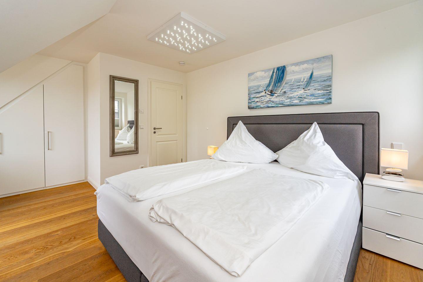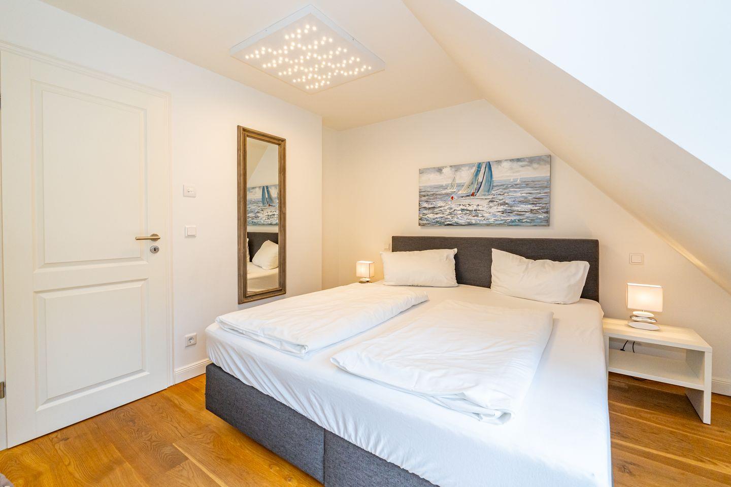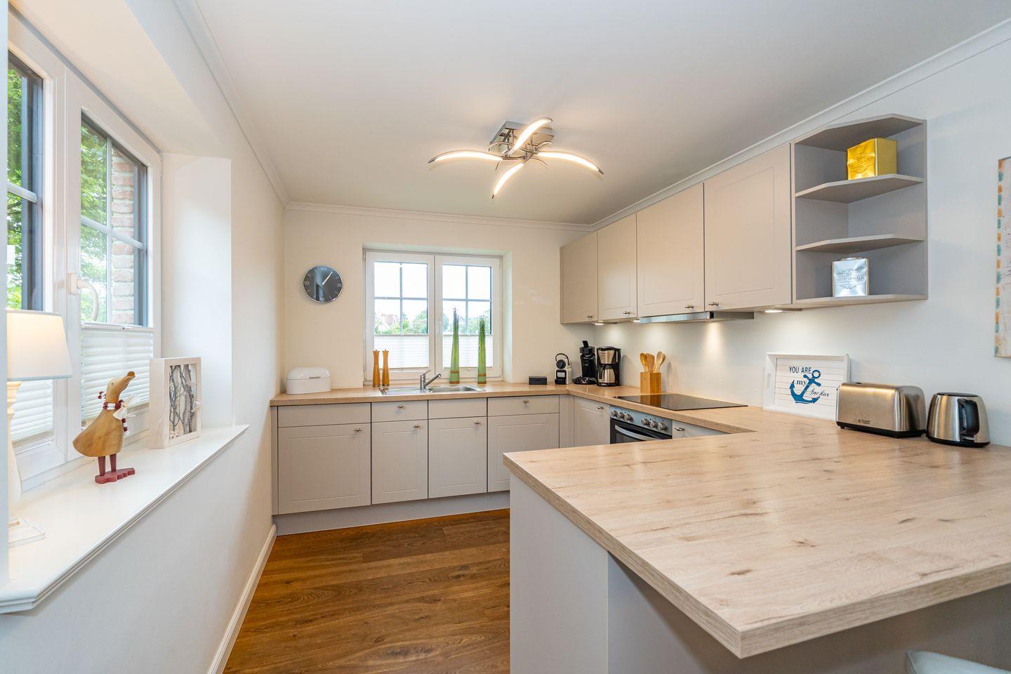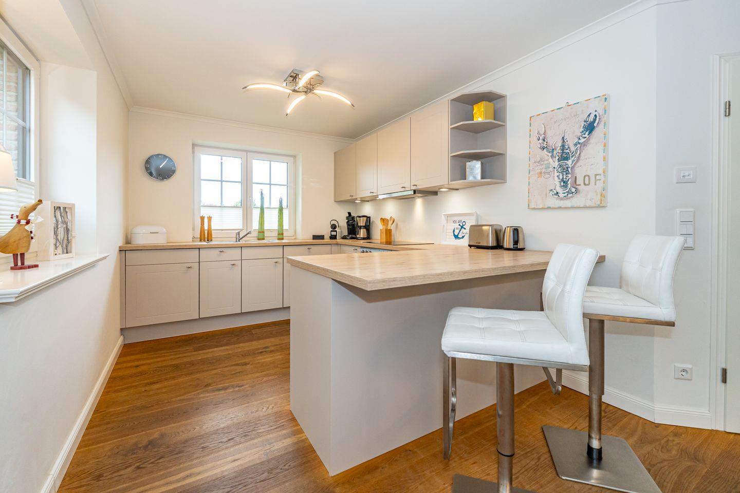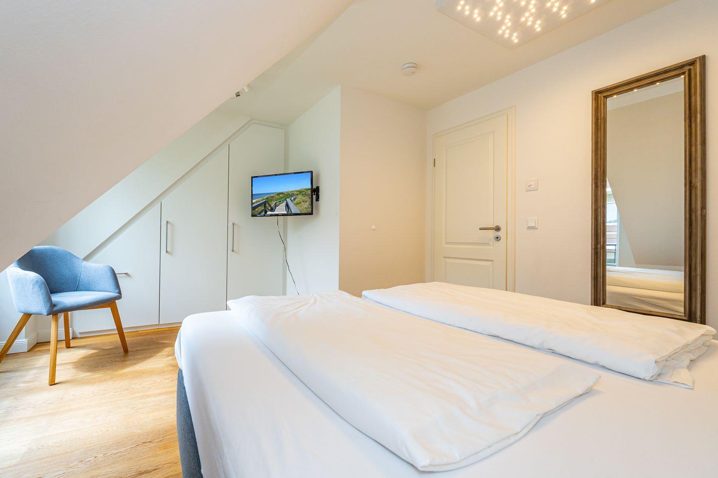 Durch die zentrale Lage der "Gode Stuv" haben Sie alle Möglichkeiten, die Insel Sylt zu erkunden. Schnell sind Sie auch fußläufig in der Westerländer Innenstadt und natürlich am wunderschönen Sandstrand. Eine gemütliche Sofalandschaft mit Elektrokamin und Blick in Ihren eigenen Garten mit Südwestterrasse, sind nur einige Höhepunkte der "Gode Stuv". Den Garten werden Sie schnell lieben lernen: Lädt Sie doch die eigene Blockhaussauna mitten im Garten zum entspannen ein. Genießen Sie auch den Strandkorb (saisonal) und die hochwertigen Lounge-Möbel. Die helle, offene Küche mit coolen Barhockern, lädt genauso wie der große Esstisch zu lauschigen Nachmittagen mit der ganzen Familie oder Freunden ein. Im Obergeschoss finden Sie zwei gleichgroße Schlafzimmer mit Boxspringbetten (180m x 200 cm), sowie das Badezimmer mit ebenerdiger Dusche. Im Dachgeschoss befindet sich das dritte Schlafzimmer mit einem Boxspringbett (160 x 200 cm). Alle Schlafzimmer verfügen über ein TV-Gerät. Auch eine Gästetoilette mit ebenerdiger Dusche, sowie eine Waschmaschine im Erdgeschoss, gehört mit zur Ausstattung. Ein Stellplatz, für Ihr Auto ist selbstverständlich direkt am Ferienhaus für Sie reserviert. Haustiere sind nach vorheriger Anmeldung und gegen Gebühr erlaubt (10,- € pro Tier/Tag).