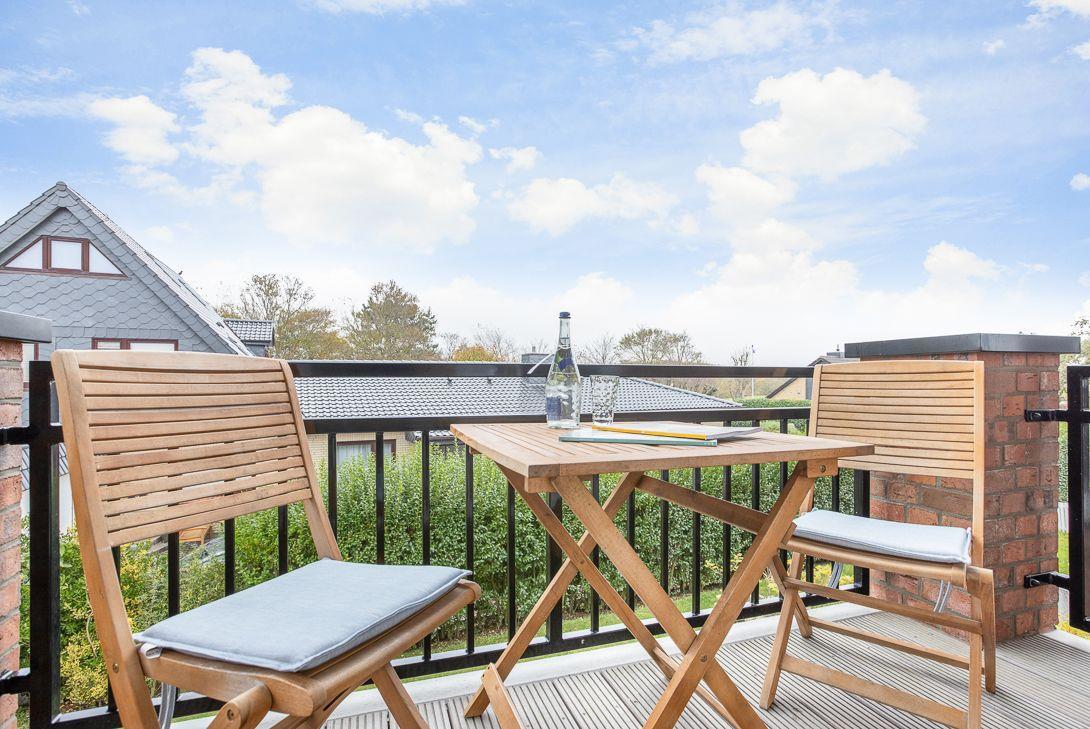 Auf dem Balkon (Ostseite), vor Ihrem Schlafzimmer, empfängt Sie die Morgensonne.