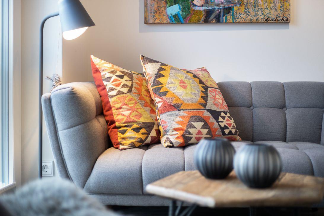Fußbodenheizung und bodentiefe Fenster in allen Räumen machen die Lille Stuuv hell und freundlich.