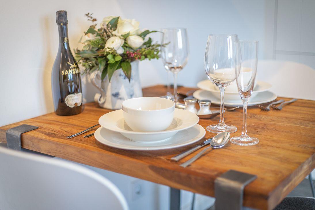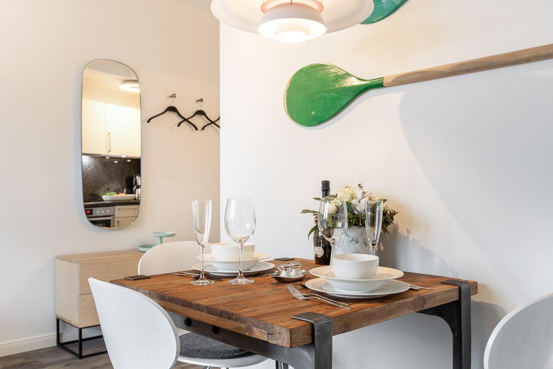 In dieser 2 Zimmer-Ferienwohnung (40 qm2), welche mit hochwertigen Einbauten und geschmackvollen Möbeln eingerichtet ist, werden Sie sich sofort wohlfühlen.