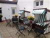 Auf der Sonnenterrasse, mit Strandkorb, finden Sie Entspannung bei einem gemütlichen Frühstück.