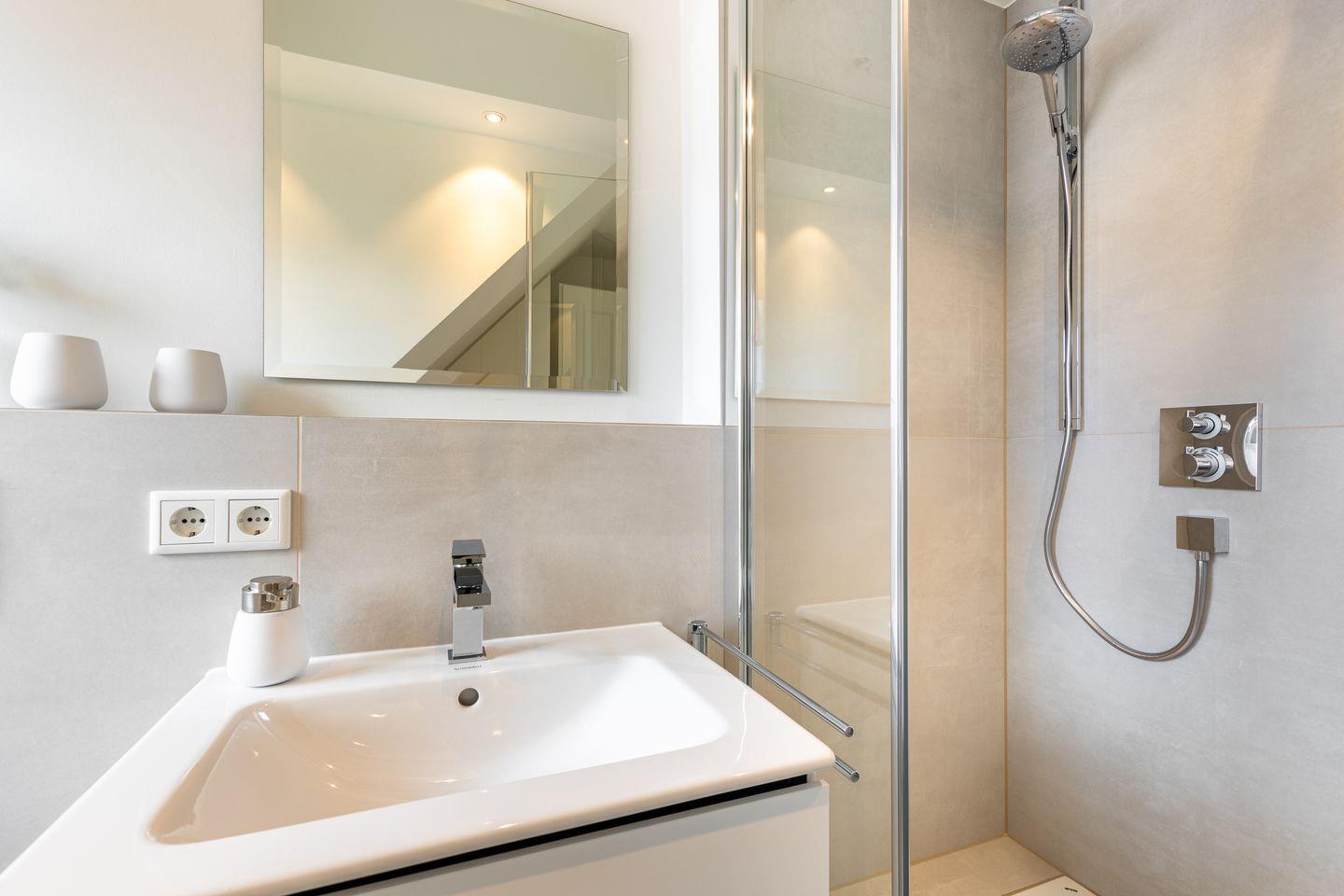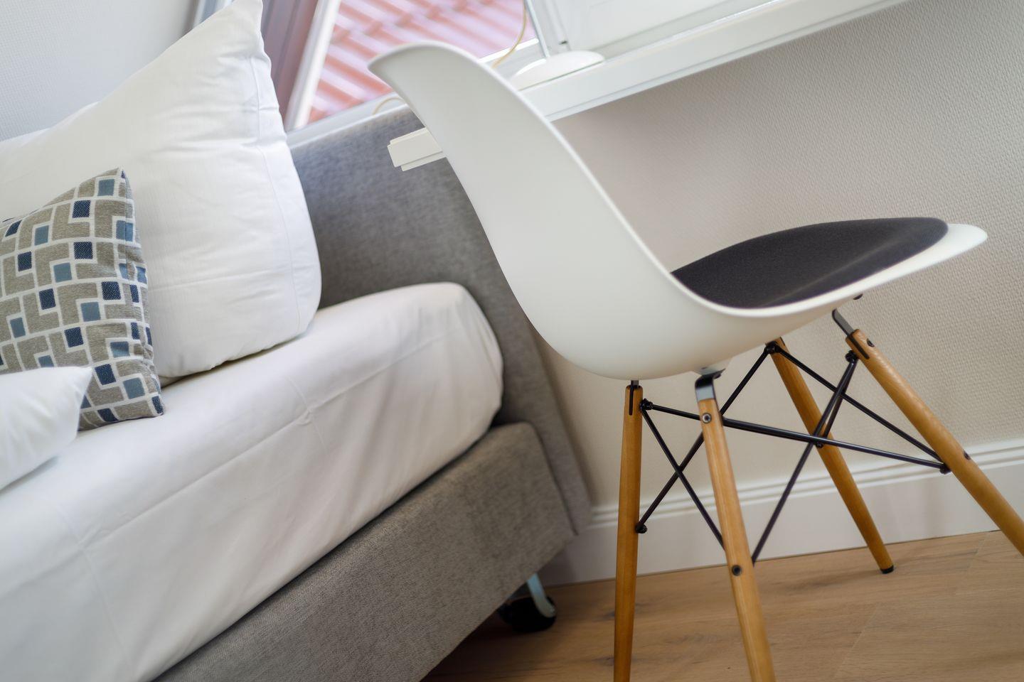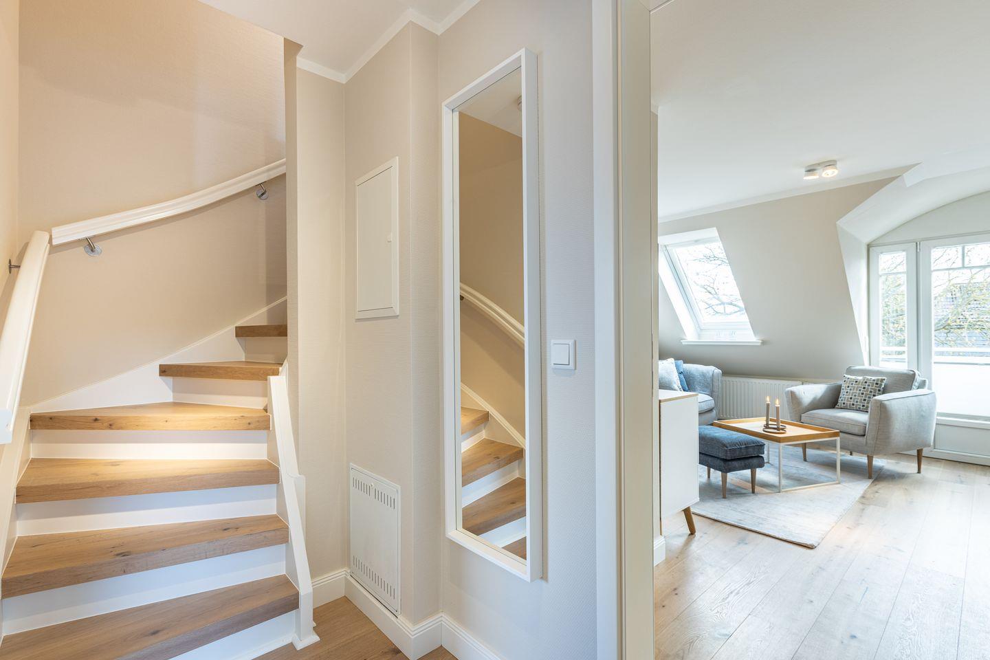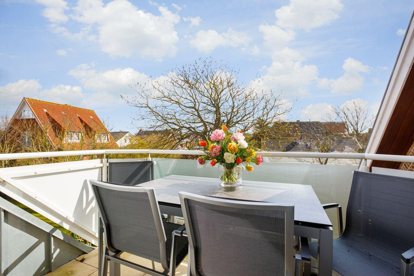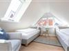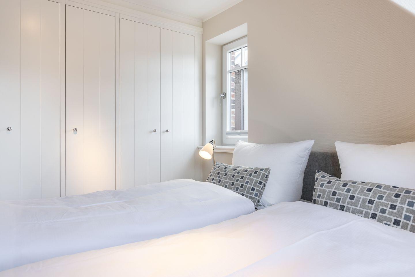 Helle 3- Zimmer-Ferienwohnung im 1 Obergeschoss. Designermöbel und -Lampen sowie Eichenholz-Parkett in der gesamten Ferienwohnung. Komplett designt durch „Homestaging Sylt“. Ein helles Wohn- / Esszimmer mit einer hochwertigen Markenküche (Geschirrspüler Herd, Mikrowelle, Gefrierfach Kaffeefiltermaschine) und einem vorgelagerten Sonnenbalkon. Des Weiteren befindet sich auf dieser Ebene ein Schlafzimmer mit Boxspringbett, ein Flur und ein komplett neues Duschbad-WC mit Fußbodenheizung. Der Spitzboden ist ausgebaut und bietet einen weiteren Schlafraum mit zwei Einzelbetten. Das Ambiente wird durch hochwertige Tischlereinbauten in beiden Schlafzimmern und Bad abgerundet. Im Wohnzimmer und in den beiden Schlafzimmern befinden sich jeweils ein Smart-TV (2 x Samsung Frame) . WLAN ist selbstverständlich vorhanden. In der Ferienwohnung sind keine Haustiere erlaubt. Dies ist eine Nichtraucherwohnung. Ein kostenfreier Stellplatz gehört zur Ferienwohnung. Ein Fahrradständer steht dem gesamten Wohnkomplex vor dem Haus zur Verfügung. Im Haus befinden sich Waschmaschine und Trockner gegen Gebühr in einem Gemeinschaftskeller.