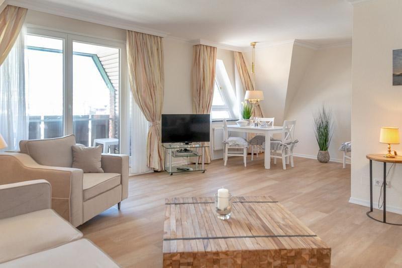Direkte Lage zum Strand und der City von Westerland in der 3. Etage eines top gepflegten Wohnhauses. Großzügiges helles Wohnzimmer mit separater moderner Küche. Flat TV, Loggia über der Fußgängerstraße