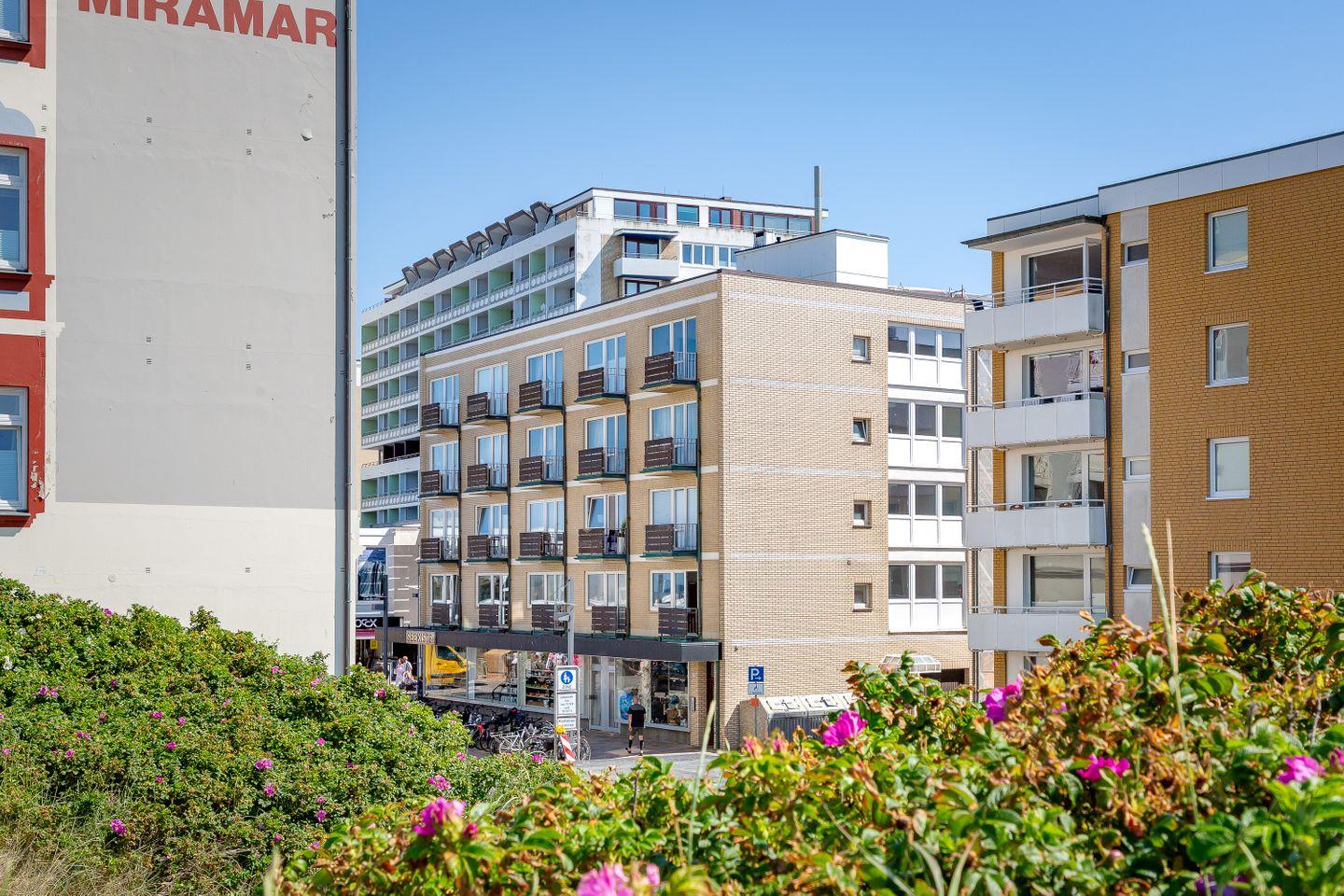 Das schick eingerichtete 1-Zimmer-Appartement befindet sich in der obersten Etage (4. OG) in einem mehrstöckigen Appartementhaus in kurzer Laufdistanz zum Strand, ca. 1 Minute vom Stadtkern entfernt.