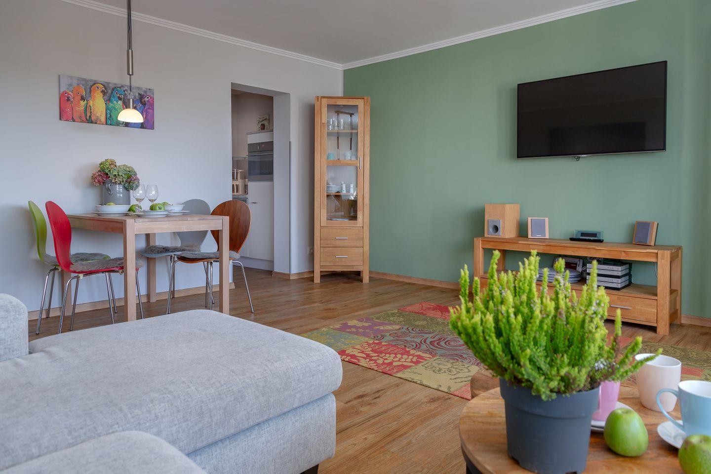 Die Wohnung besticht durch ihre exzellente Raumaufteilung mit einem großzügigen Wohnbereich, der mit modernen Möbeln, einer Essecke und einem Smart TV ausgestattet ist. Der separate Schlafbereich verfügt sogar über einen eigenen TV für entspannte Abende. Genießen Sie die besten Seiten des Strandlebens mit der idealen Lage gegenüber dem Surf Strand im Abschnitt Brandenburg.