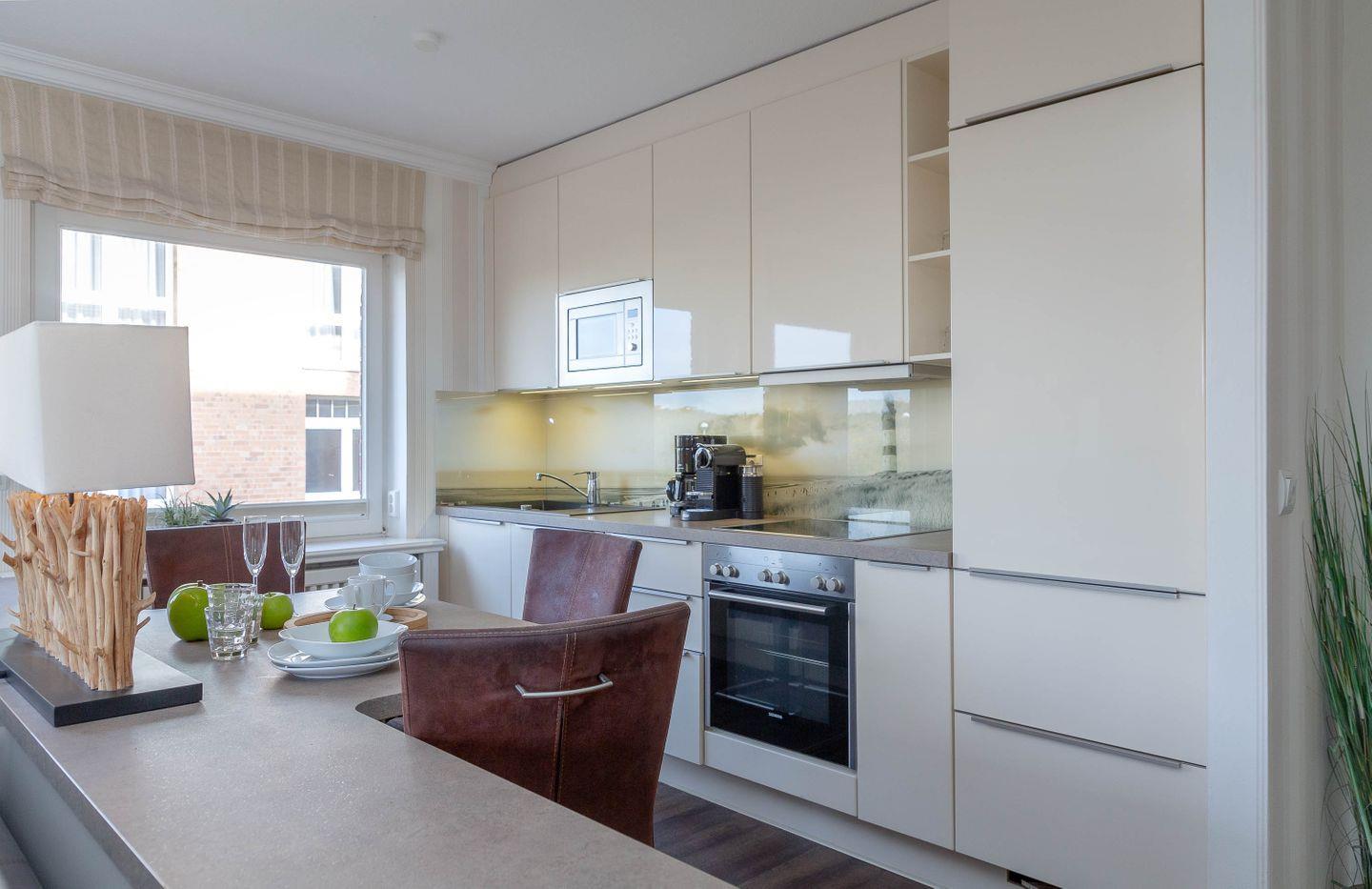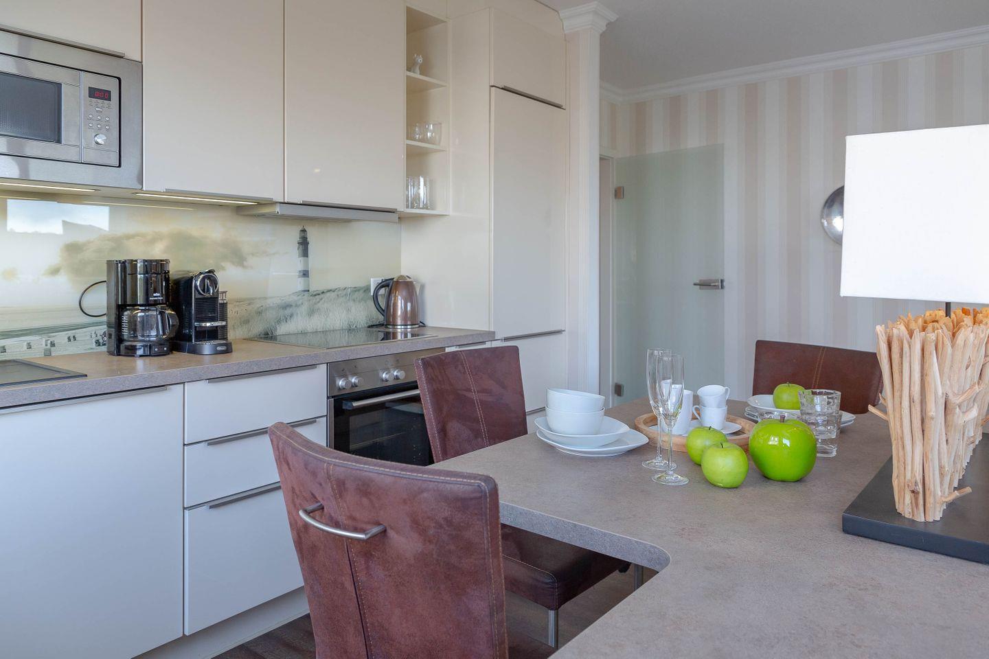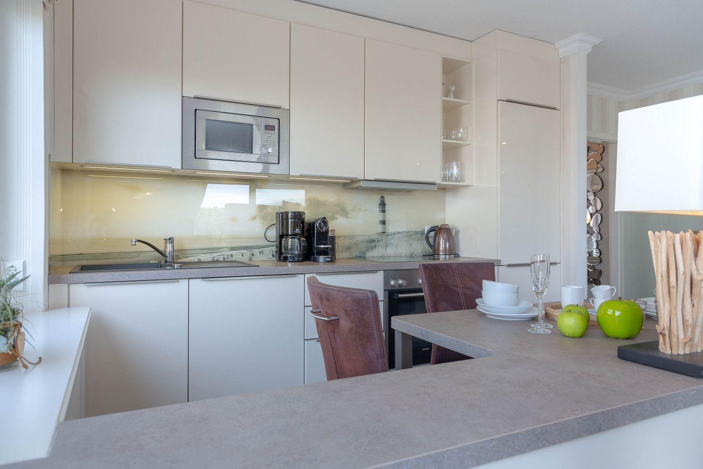 Direkt hinter dem Dünenkamm in kaum zu überbietender Wohnlage (50 Meter bis zum Strandübergang, 100 Meter bis zur Friedrichstraße), erwartet Sie auf rund 55 m² behagliche Gemütlichkeit gepaart mit allem erdenklichen Luxus