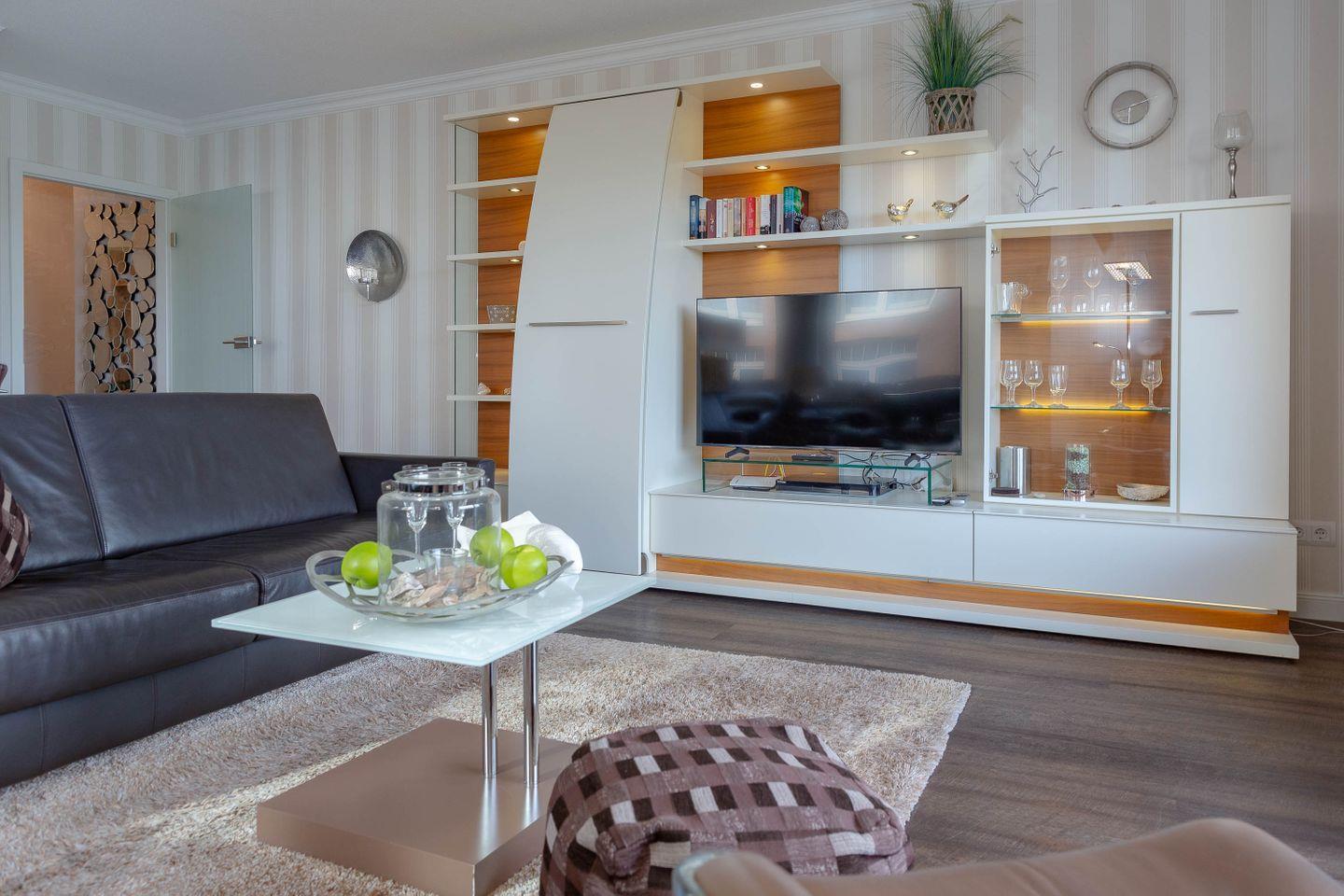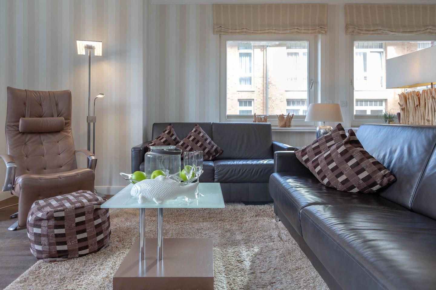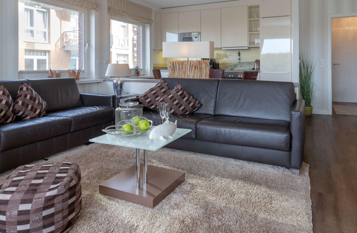 Direkt hinter dem Dünenkamm in kaum zu überbietender Wohnlage (50 Meter bis zum Strandübergang, 100 Meter bis zur Friedrichstraße), erwartet Sie auf rund 55 m² behagliche Gemütlichkeit gepaart mit allem erdenklichen Luxus