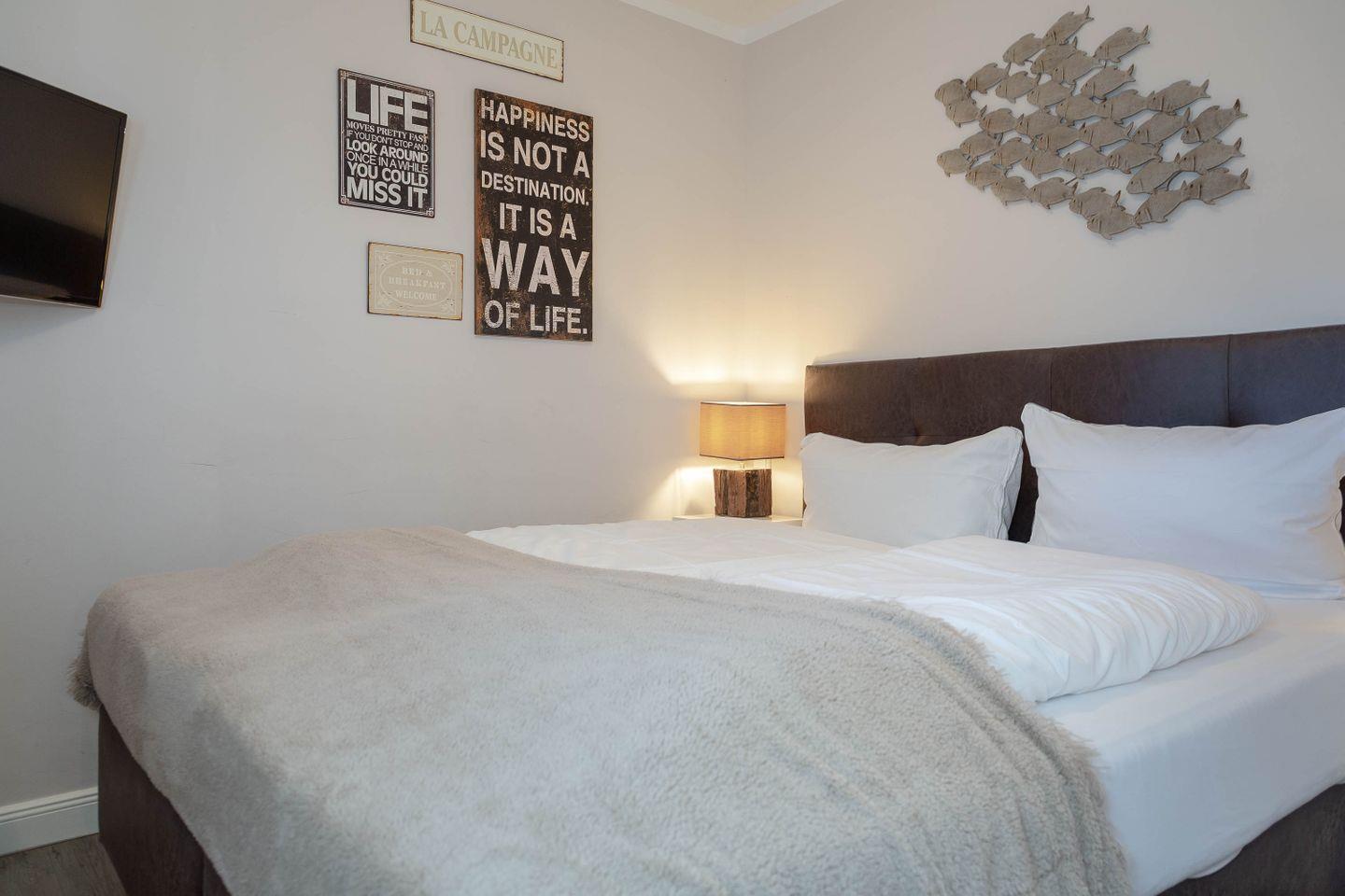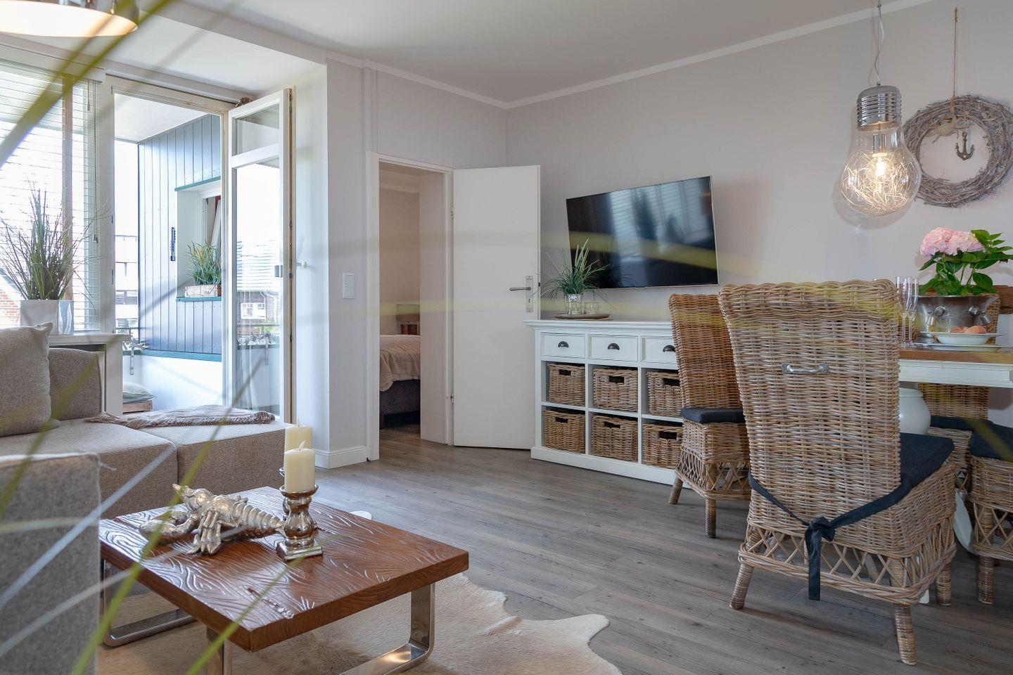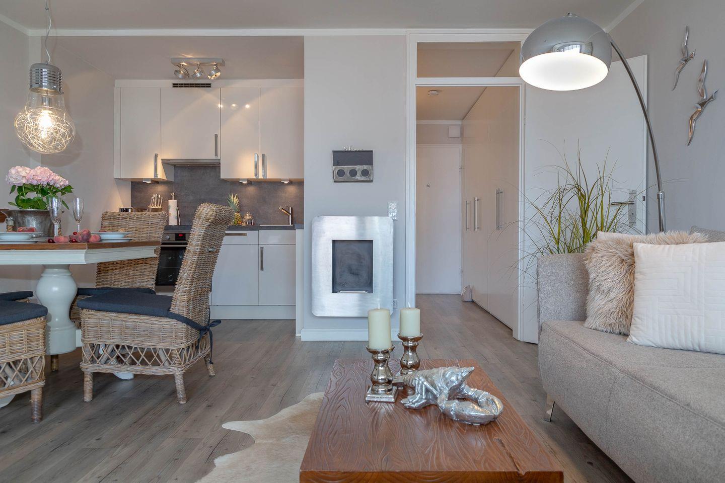 Direkte Strandlage!! Diese top modernisierte 2 Zimmer-Wohnung im Appartementhaus Käpt’n Christiansen (2. OG, ca. 42 qm) befindet sich zentral gelegen, direkt am Strandübergang, an den Dünen. Bis zur Friedrichstraße, der Einkaufs- und Fußgängerzone sind es nur ca. 200 Meter. Zahlreiche Restaurants, Weinlokale und Cafés finden Sie in der Nachbarschaft. Die Wohnung ist liebevoll bis ins Detail ausgestattet worden. Hier wird es Ihnen an Nichts fehlen. Dieses schicke Domizil ist mit modernen Designbelag in Beachhouse Optik ausgelegt und mit sehr viel Geschmack hochwertig eingerichtet. Die Wohnung verfügt über einen Wohn-/Essbereich mit einer angrenzenden, hochwertigen, komplett ausgestatteten Einbauküche. Wohnbereich mit Balkon. Hier können Sie das Meeresrauschen, sowie im Sommer die Abendsonne genießen. Das sep. Schlafzimmer ist mit einem schicken Boxspringbett und Flat-TV ausgestattet. Eine weitere Schlafmöglichkeit bietet das großzügige Schlafsofa im Wohnbereich. Diese Wohnung bietet Platz für bis zu 3 Personen. Weiter verfügt diese Wohnung über ein modernes Duschbad mit bodentiefer Duschwanne und Regendusche, ein Fön und ein beleuchteter Schminkspiegel runden die Ausstattung im Bad ab. Im Gemeinschaftskeller des Hauses befinden sich die Münzwaschmaschine, sowie der Wäschetrockner. Den Bewohnern des Hauses stehen PKW-Stellplätze am Haus frei zur Verfügung. Ein Fahrstuhl ist nicht vorhanden.
